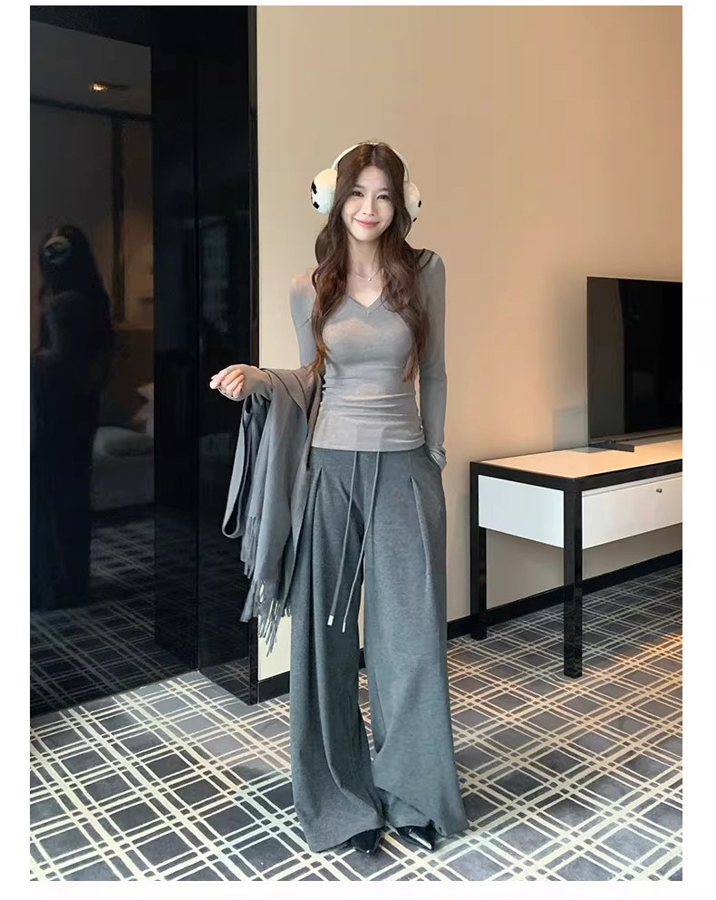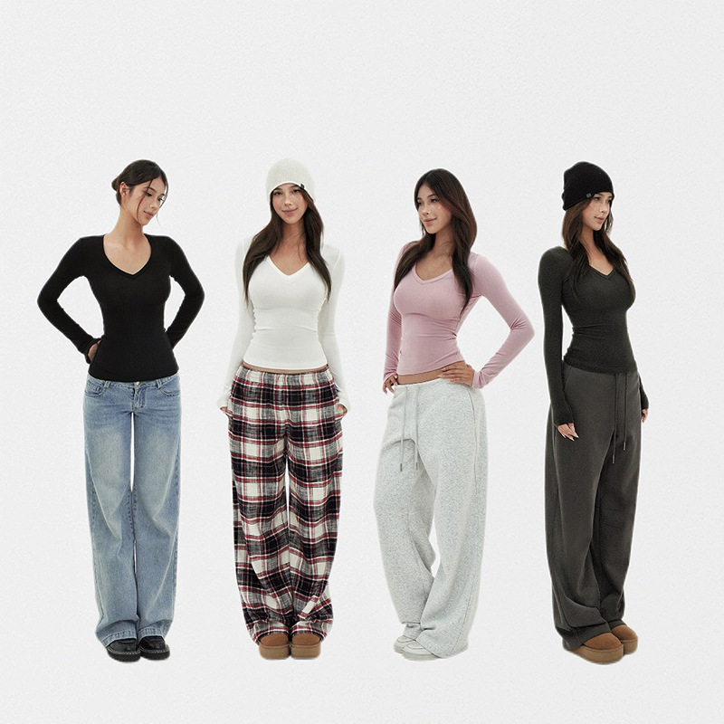 現物スキムズアメリカ風ギャル秀気vネック正肩長袖tシャツモーデール肌に優しい質感のガードル