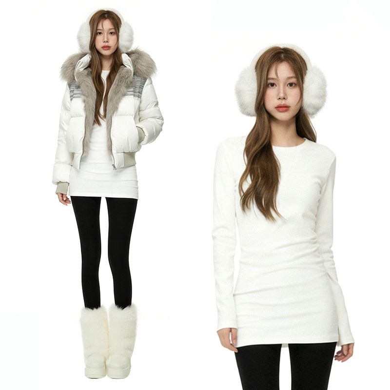 白色内搭中长款遮屁股长袖t恤女正肩修身紧身打底衫秋冬加绒上衣