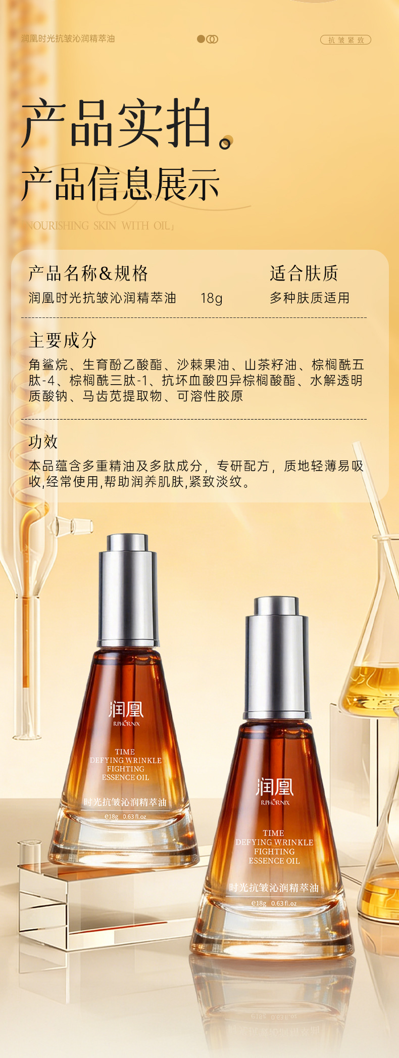 产品名称 润凰时光抗皱沁润精萃油