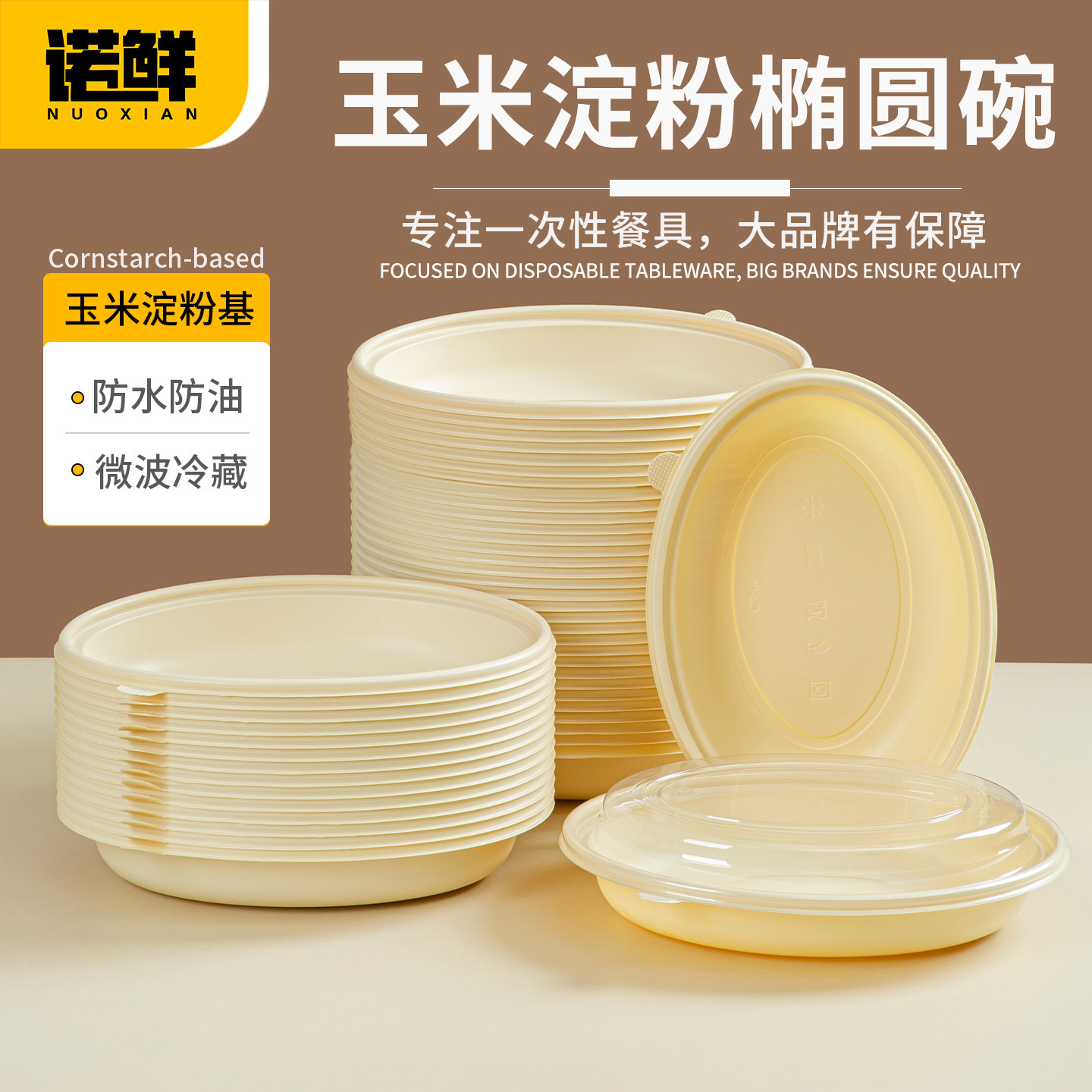 一次性玉米淀粉椭圆碗网红轻食便当减脂餐外卖盒商用打包碗可微波