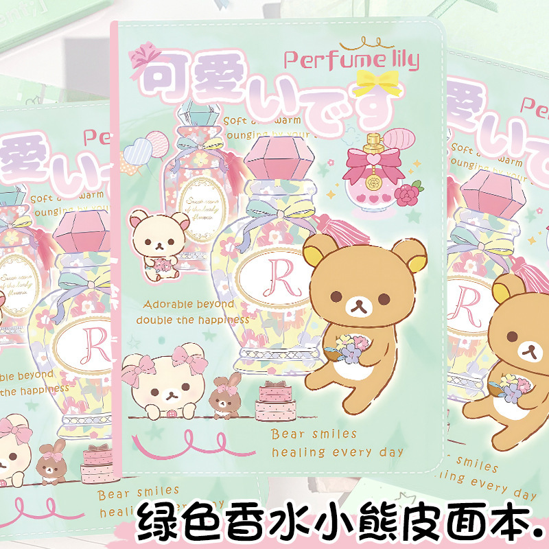 绿色香水小熊新款轻松熊手账本卡通日记本加厚笔记本a5皮面彩页本