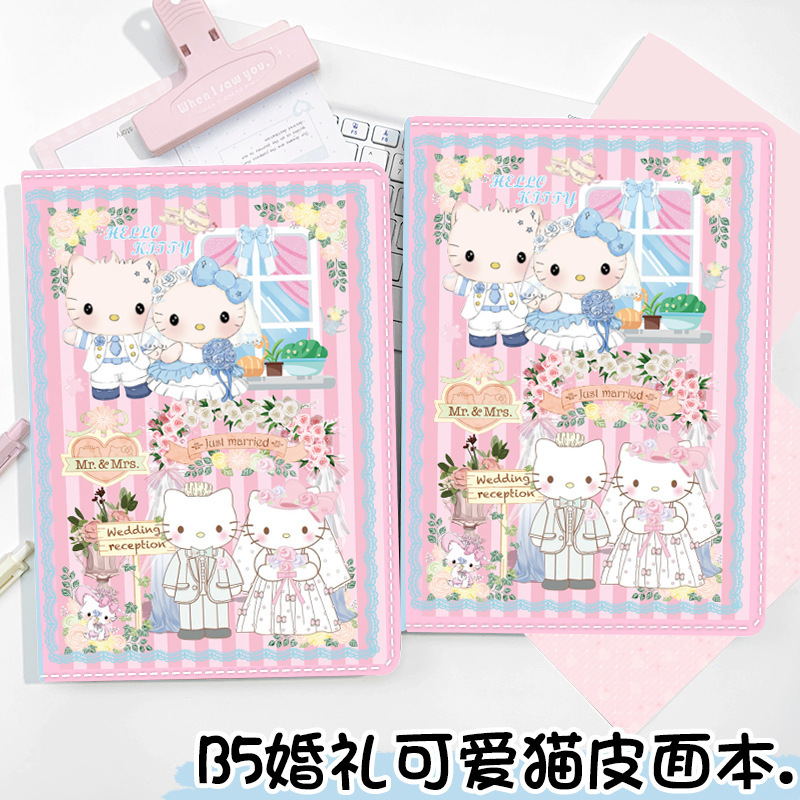 新款b5婚礼可爱猫皮面笔记本日韩可爱卡通记事本少女彩页本手账本