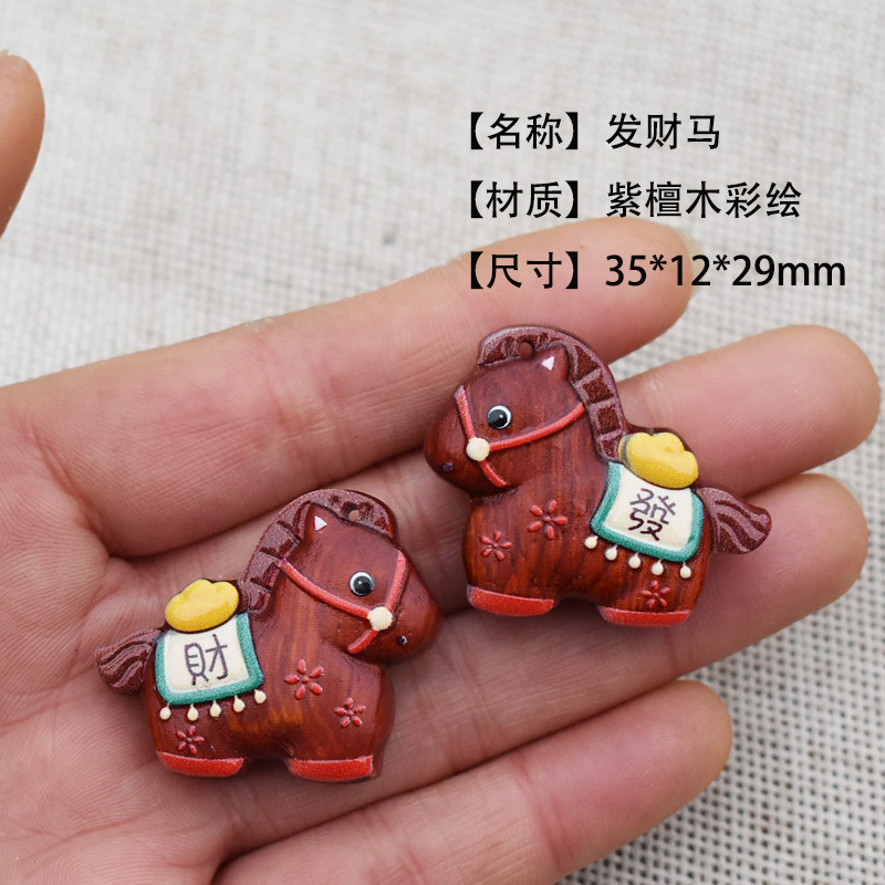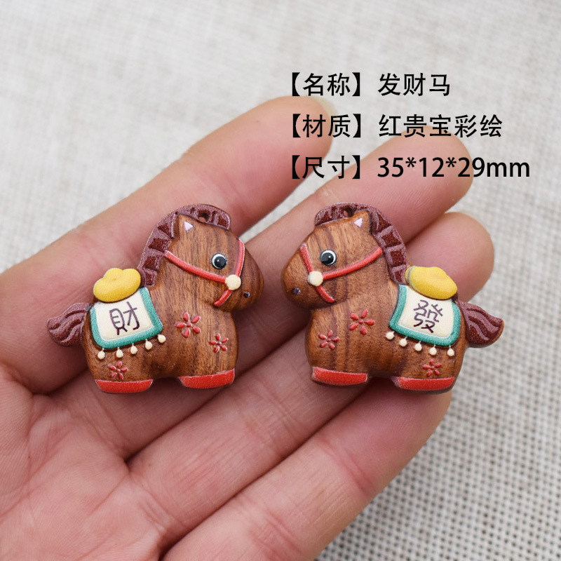 马彩绘生肖马上有钱紫檀芭比檀发财马元宝diy配饰吊坠钥匙扣车挂