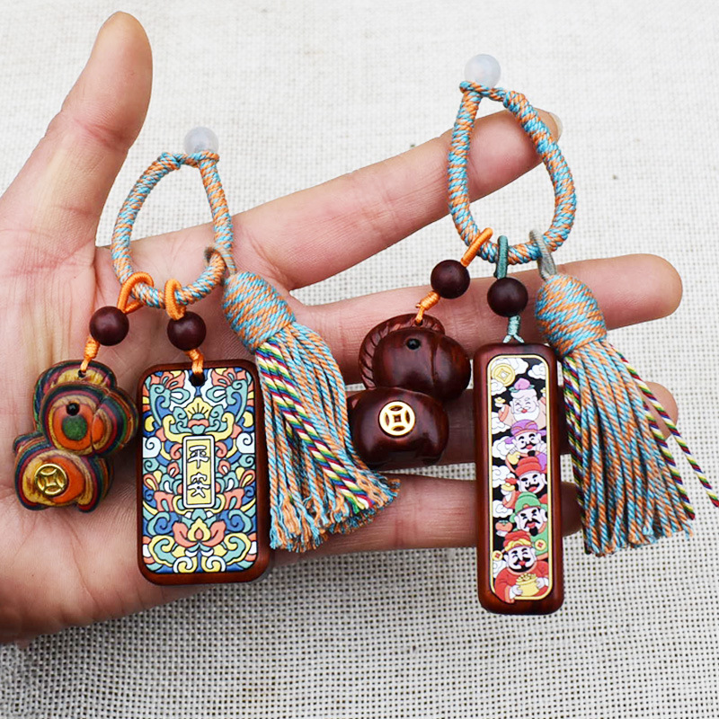 上のサインのペンダントの紫檀の檀の香の木の沈香の木のdiyの部品のキーホルダーの車は包みを掛けて手の串のアイデアを掛けます。