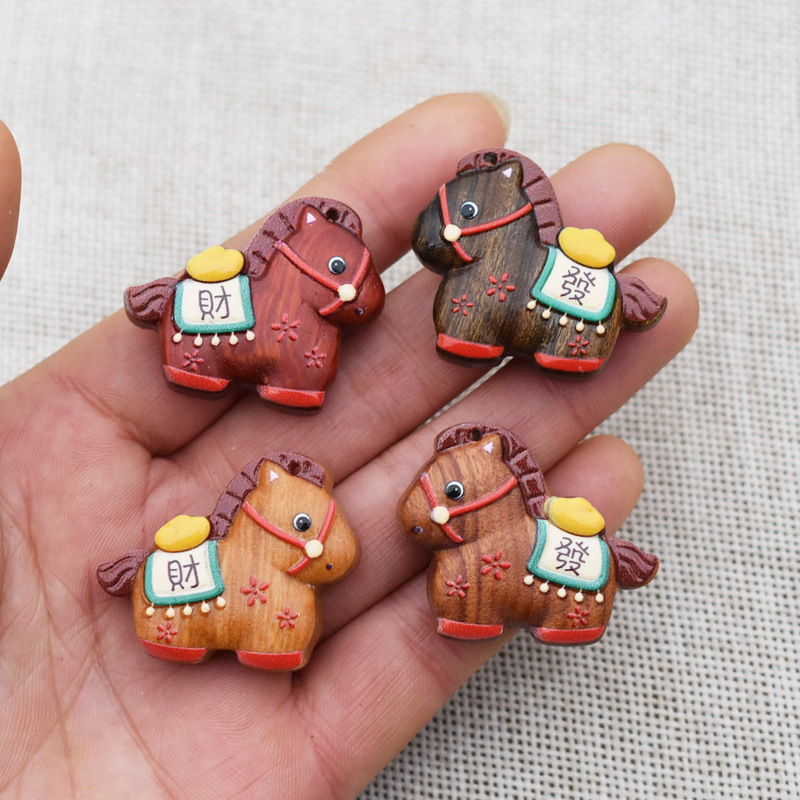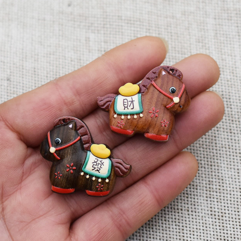 马彩绘马生肖马马上发财diy配件饰品吊坠钥匙扣车挂包挂紫檀黑檀