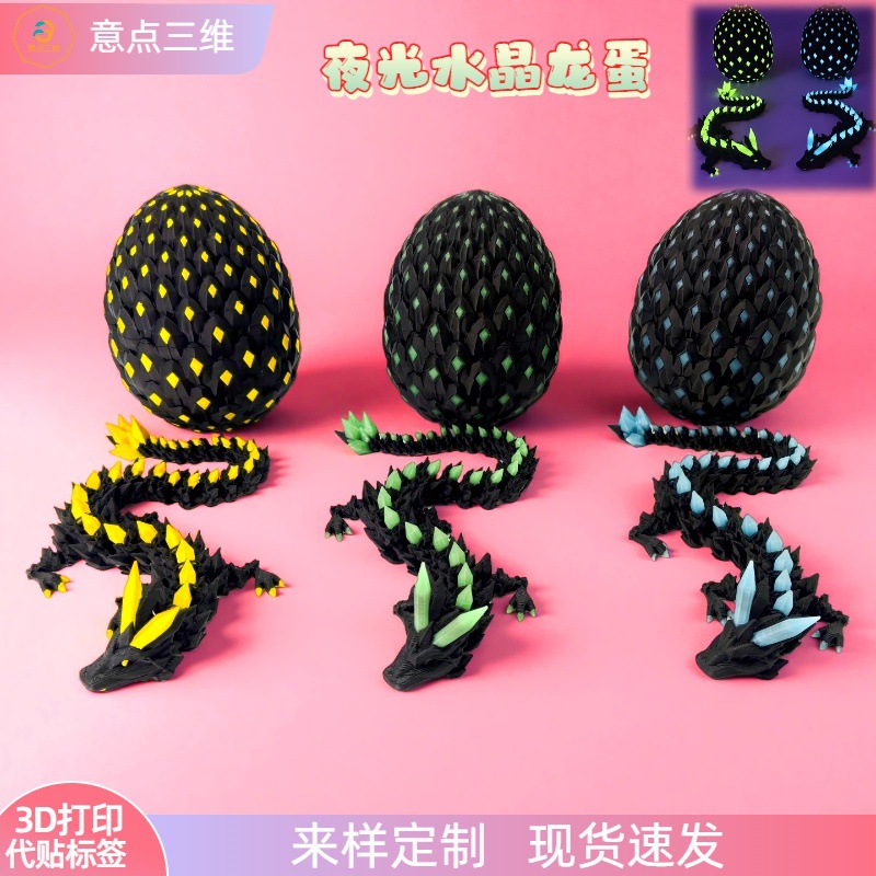 3D打印水晶龙蛋套装关节可活动夜光水晶龙摆件石头龙手办龙玩具tk