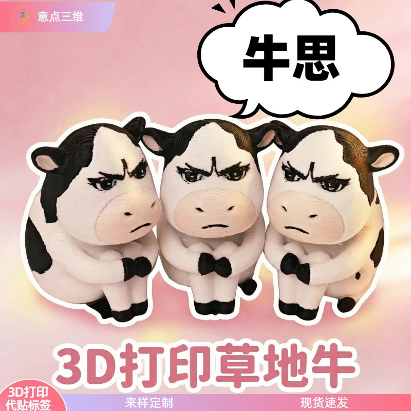 亚马逊热卖3D打印草地牛网红爆款表情包手办玩偶玩具奶牛摆件礼物