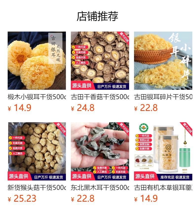 古田バスウッド小白菌乾物、硫黄不使用の特産品、もち耳、雪耳、白きくらげ、きのこ乾物、卸売農産物