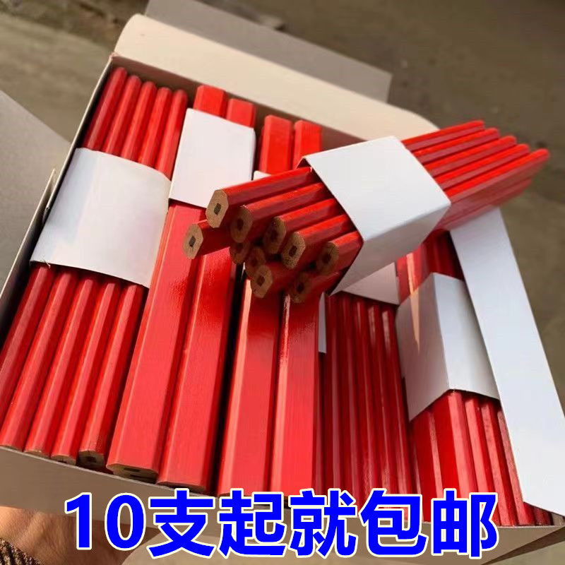 木工鉛筆工事現場専用線工専平頭筆木黒八角形赤色方形線高颜値