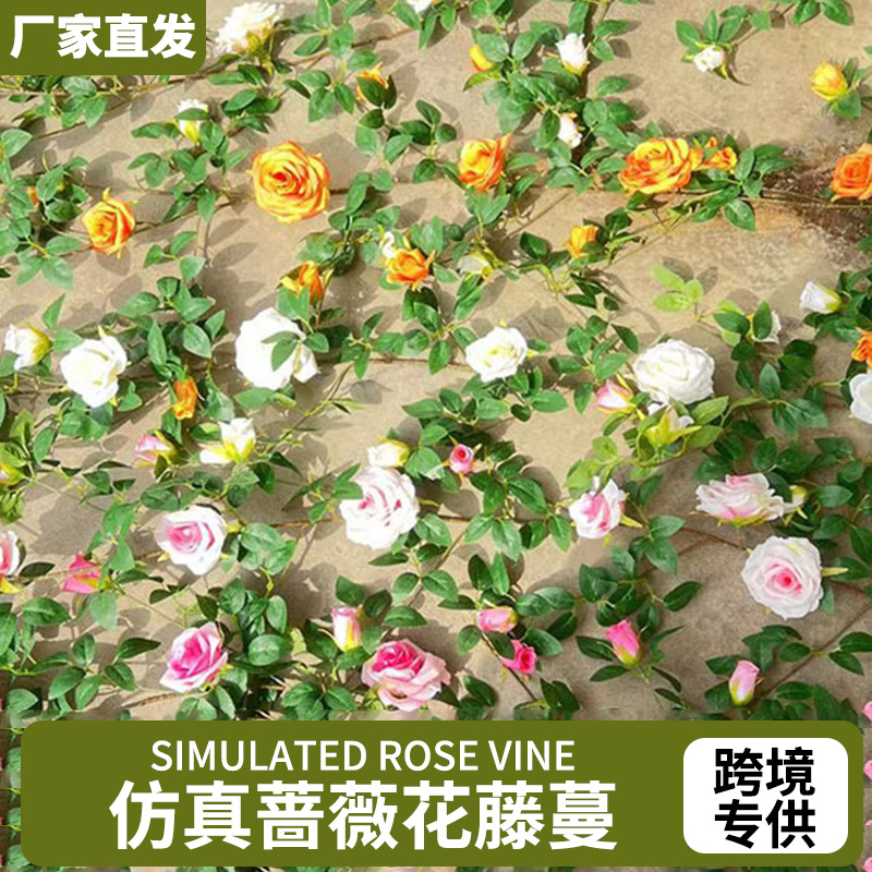 バラのつる、エアコンダクトの装飾、緑の葉のつる、花の壁、壁面緑化、造花