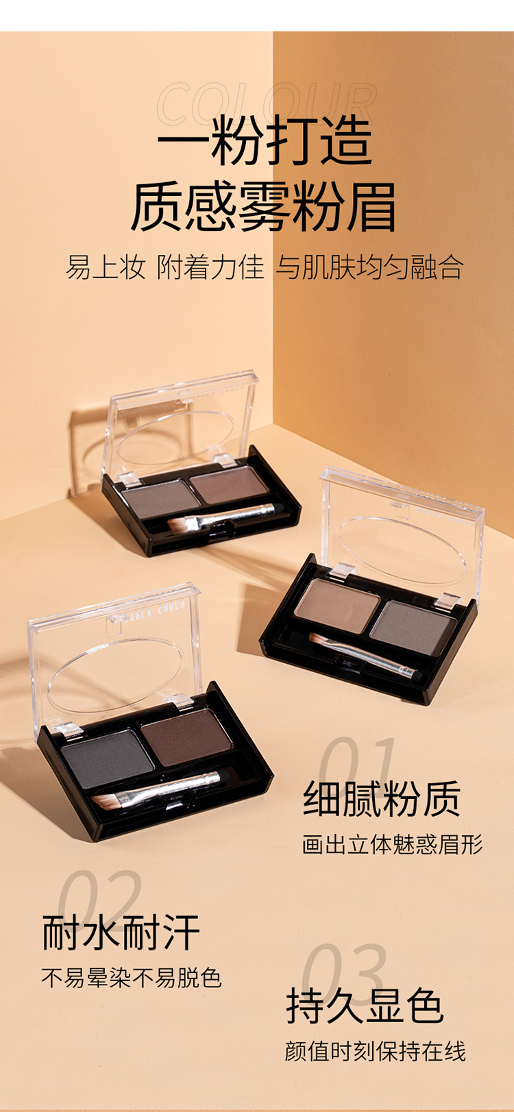 ホット製品 SR 3 色アイブロウパウダー卸売ブラシ付き汚れにくい工場出荷時の価格直販眉毛トリミング防水ソフトミストメイクアップ効果