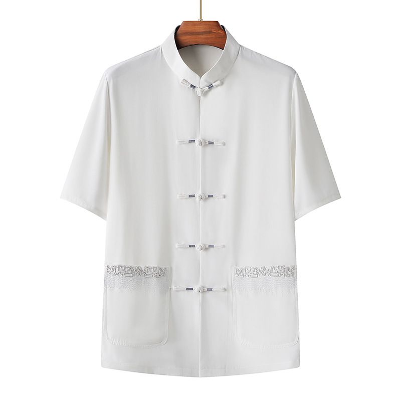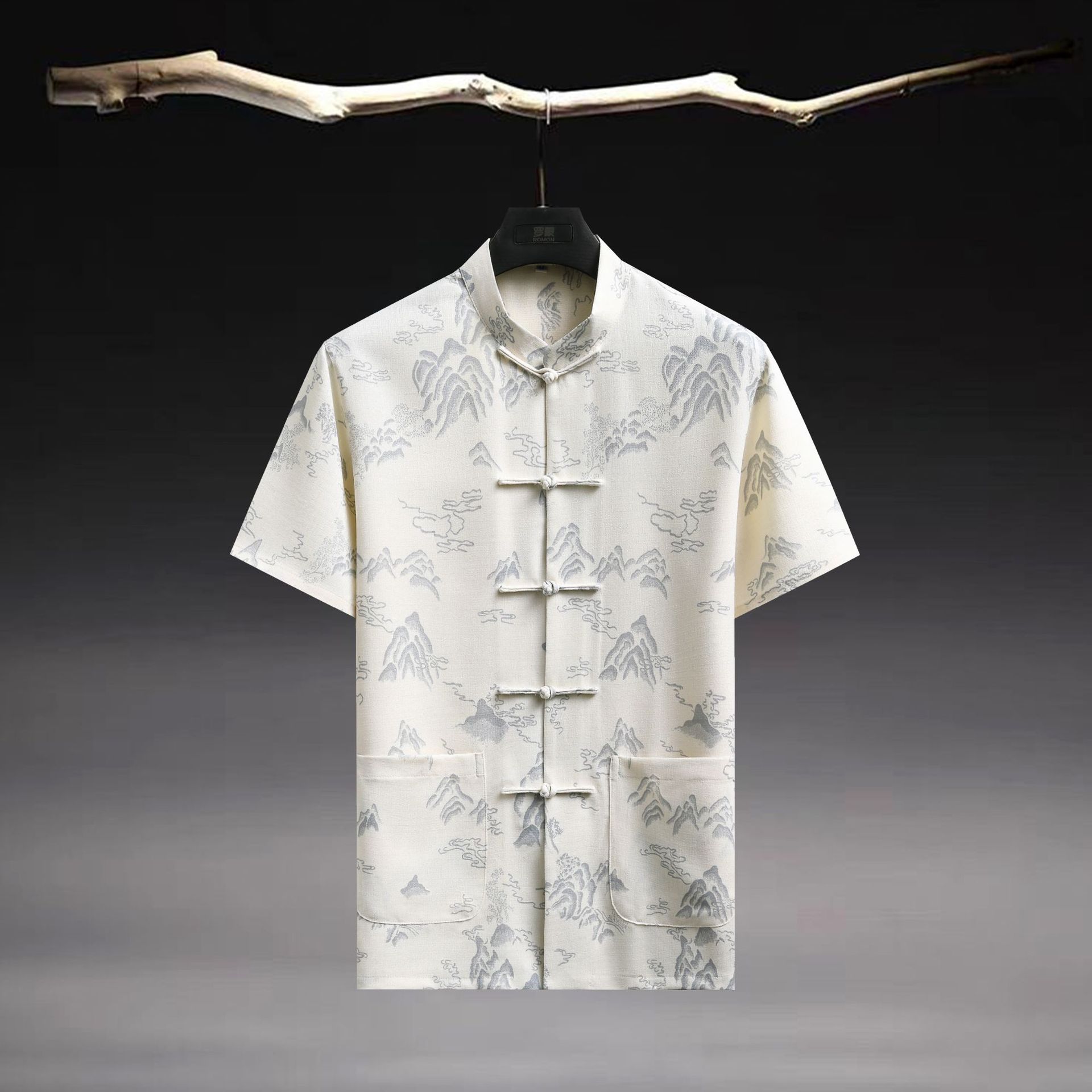 中国風中国唐スーツメンズ夏半袖トップスファッションカジュアルドラゴンスタイル若者と中年ボタンアップシャツ漢服