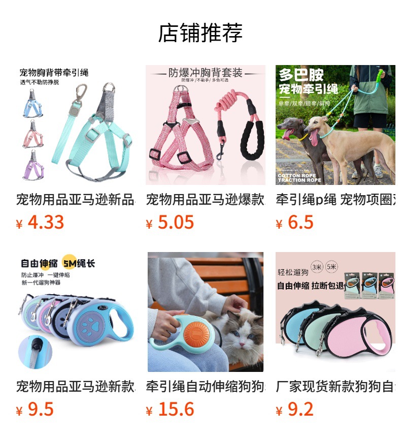 メーカー直接供給マカロンカラーラウンドロープ胸と背中のリード調節可能な犬のリードペット用品卸売
