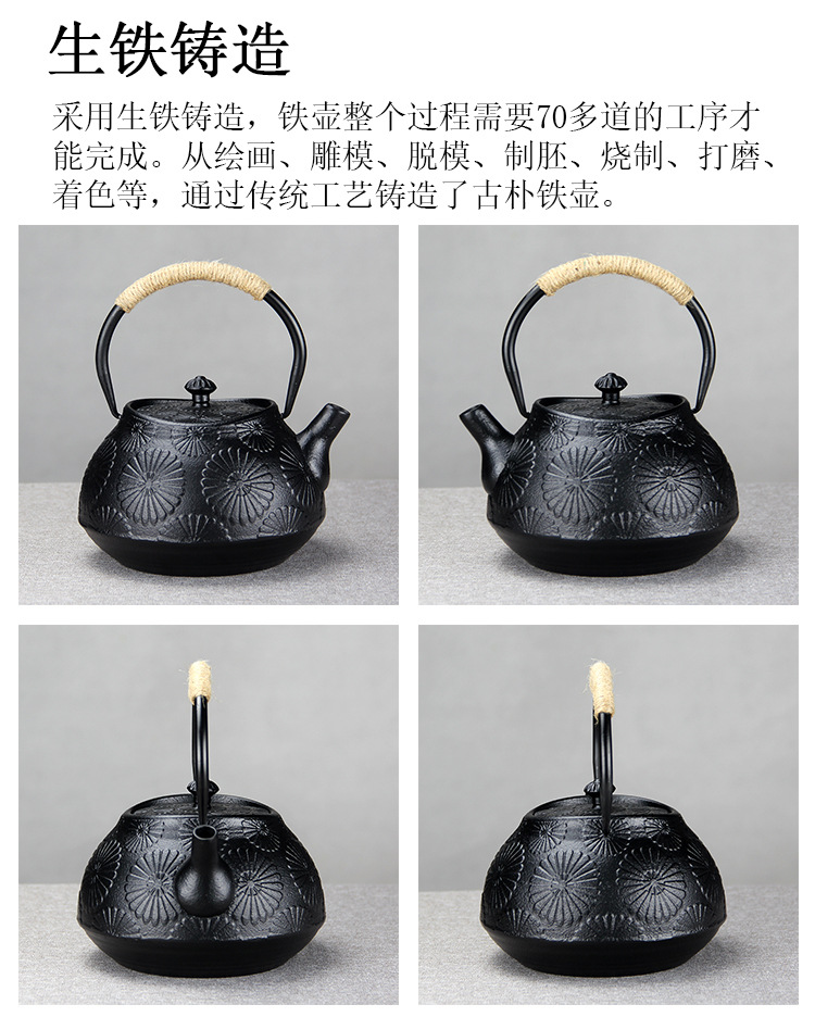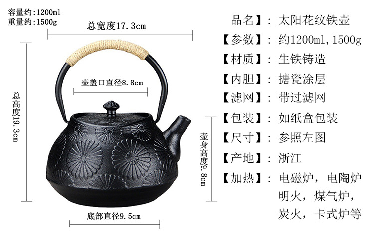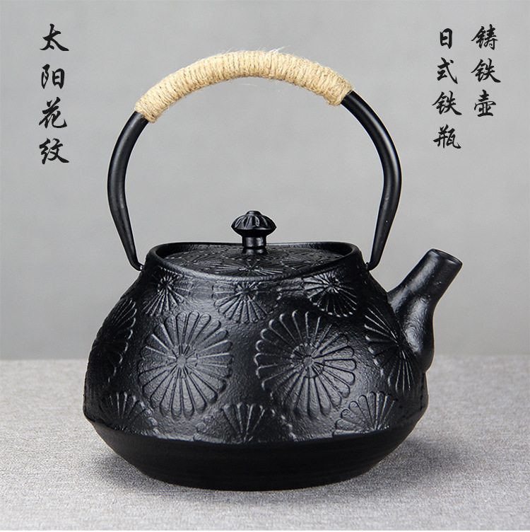 和风风1200ml太阳柄ゆで水淹れ茶手作り鋳鉄ポット家庭用養生ティーポットやかん鉄ティーポット