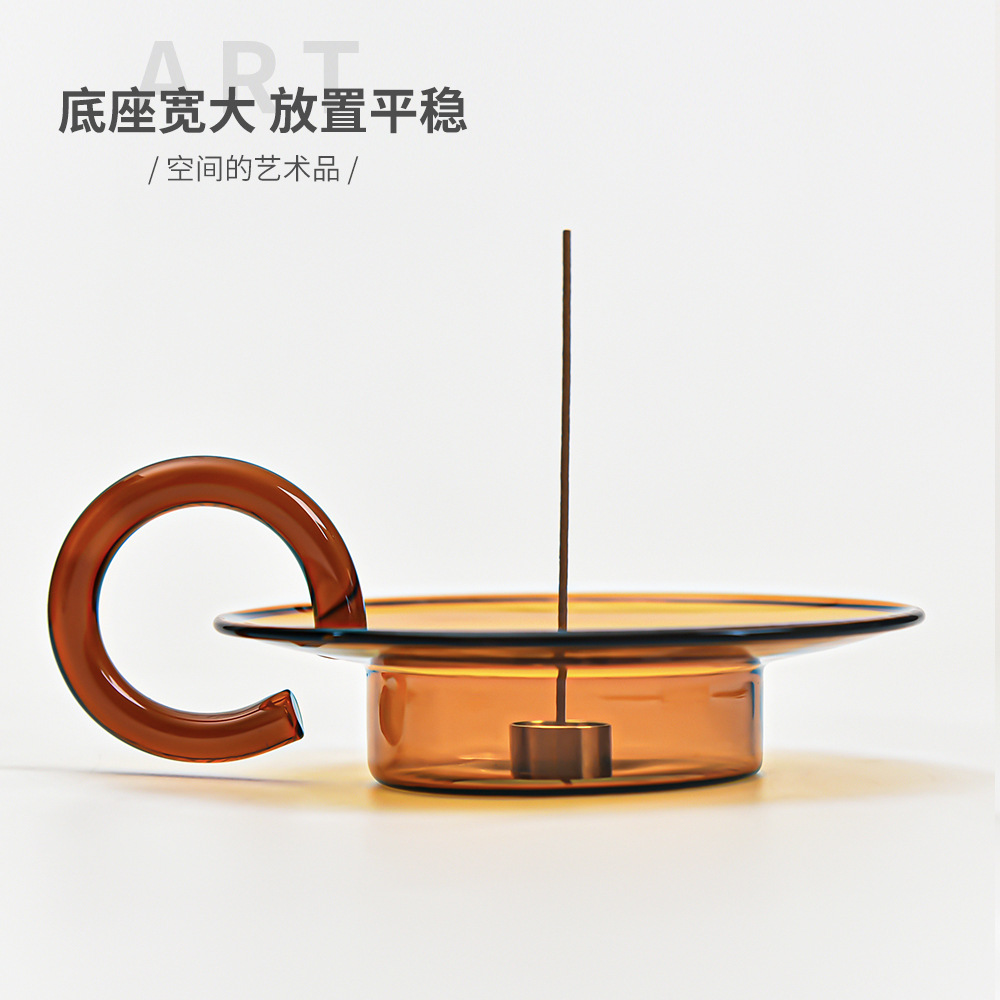 中式线香用玻璃香插 香座香托家用室内香薰檀香炉 禅意茶道点香器
