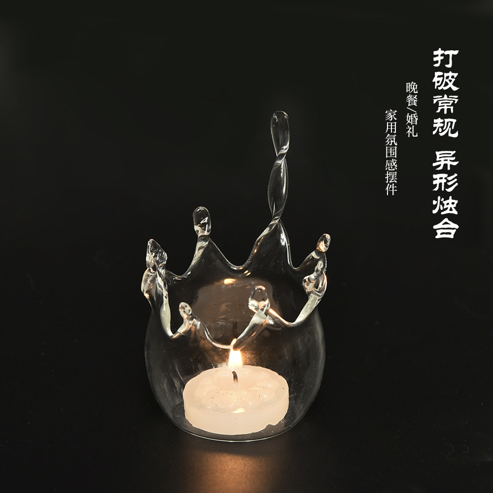 创意皇冠设计玻璃烛台蜡烛灯浪漫生日礼物 婚庆家居创意摆件