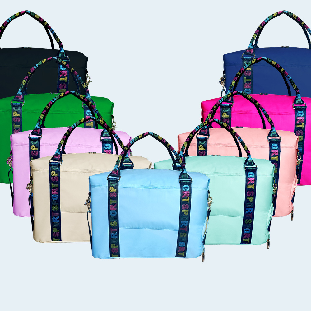 产品:沙滩包,材料:环保600D,涂层防水.尺寸:37*41*18cm,单个重量:295克,样品时间:3天.印刷精致,有刺绣亮片,亮粉.是沙滩上休闲必备用品.欢迎广大客户前来定购.