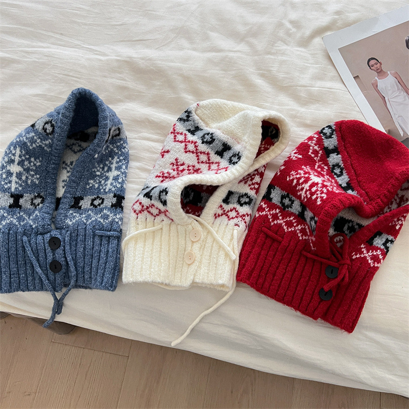 雪花法帽秋冬季儿童帽子男女童保暖防风针织帽宝宝护耳一体毛线帽