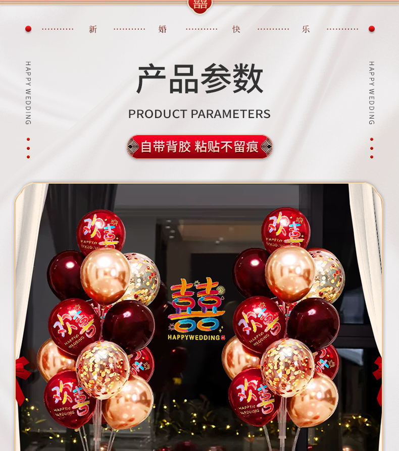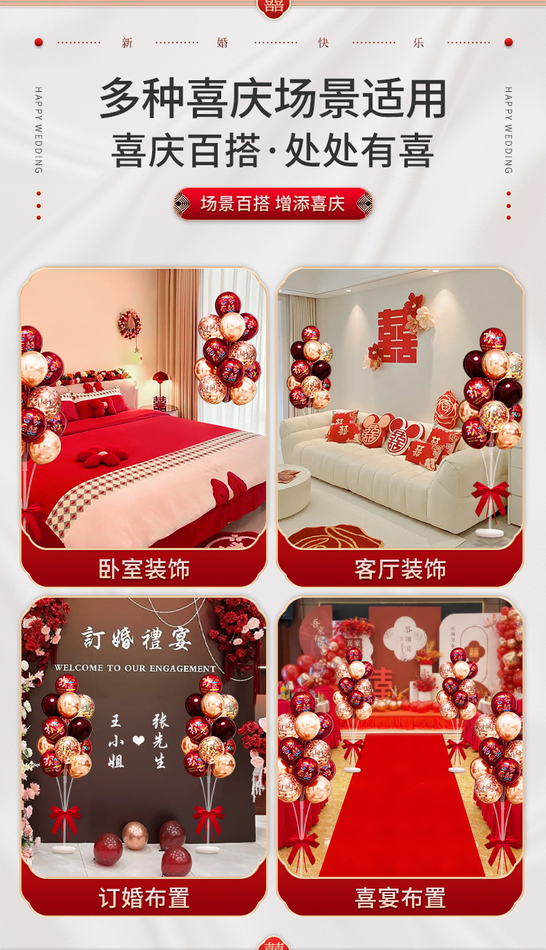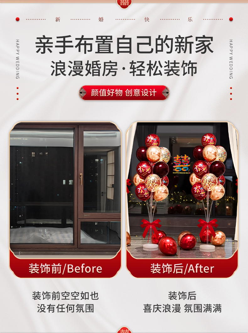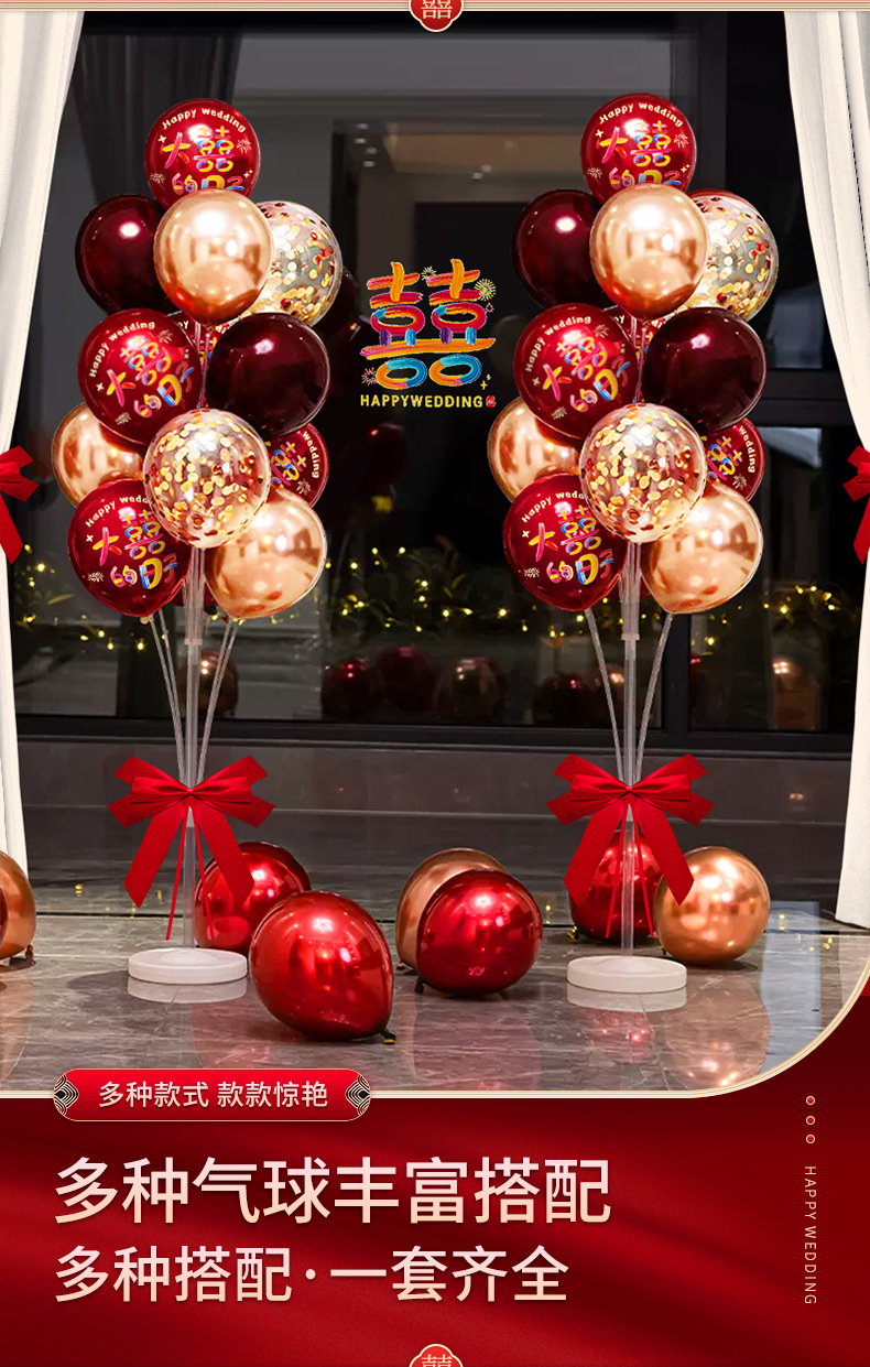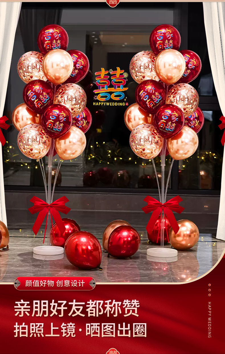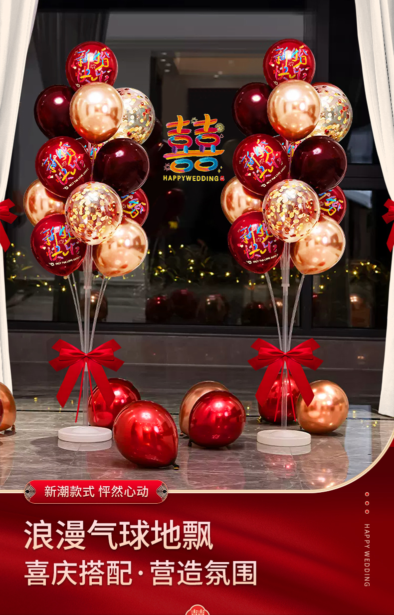 結婚風船は赤いお祝いの雰囲気感を飾って、女性の結婚部屋の寝室の装飾シーンの結婚式セットを飾っています。