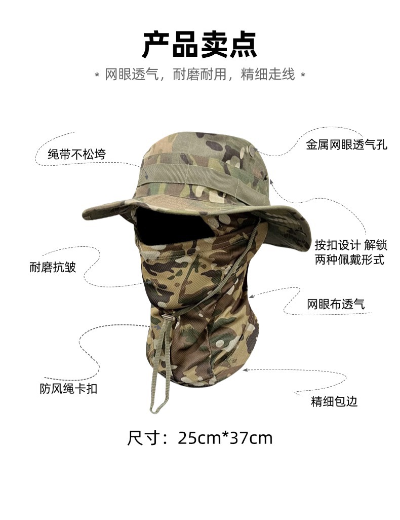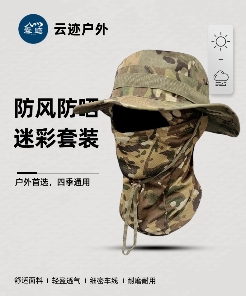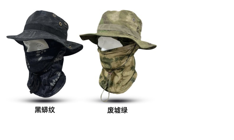 户外迷彩渔夫帽防晒圆边奔尼帽头套套装防晒战术面罩骑行登山