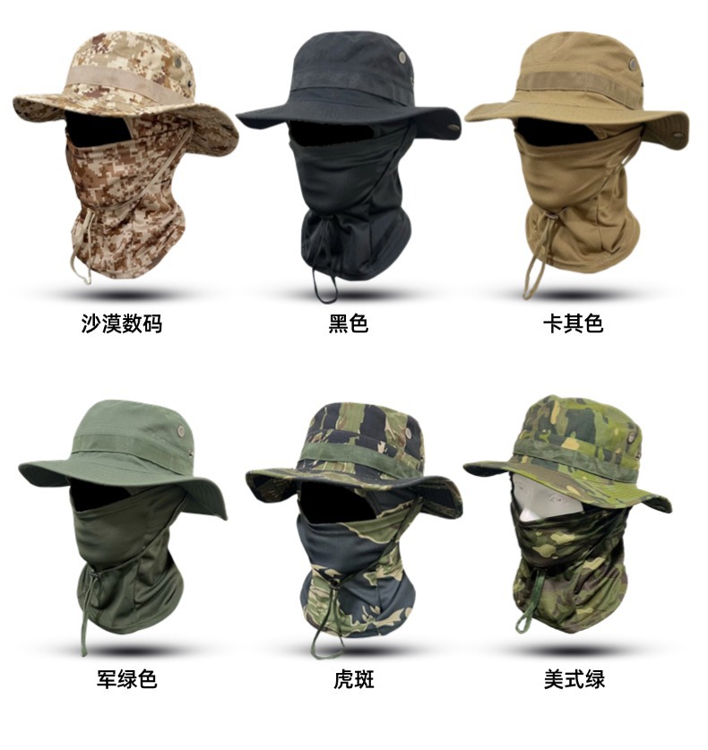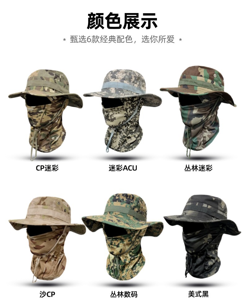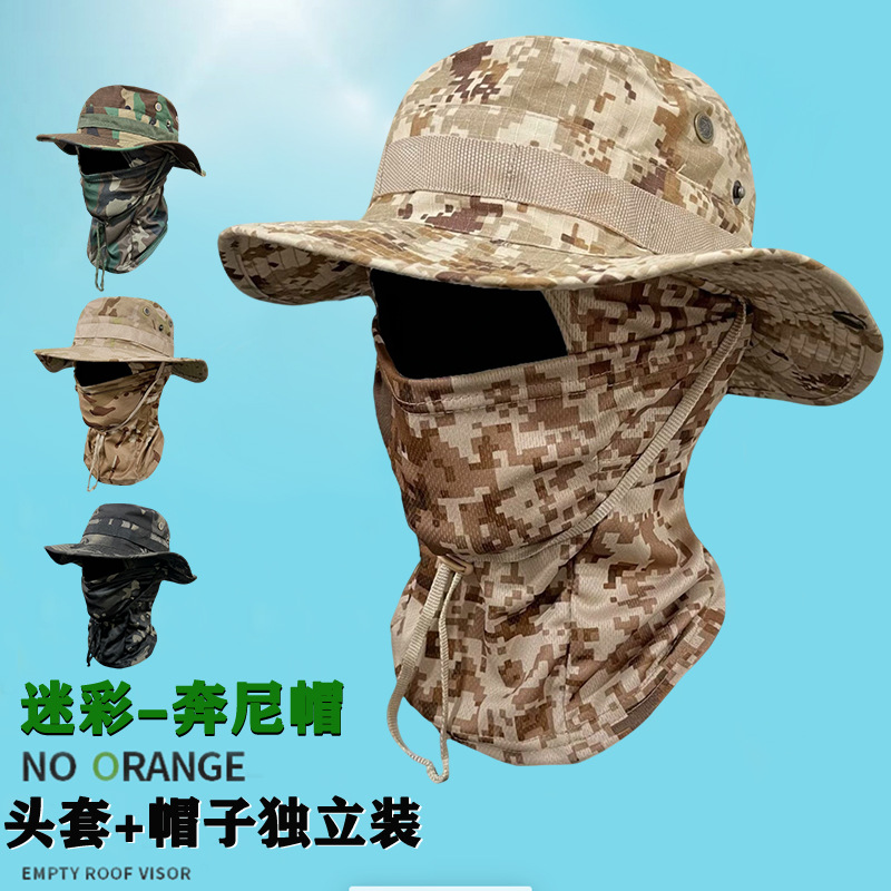 遮阳圆边帽头套套装迷彩防晒奔尼帽户外登山防风渔夫帽骑行面罩