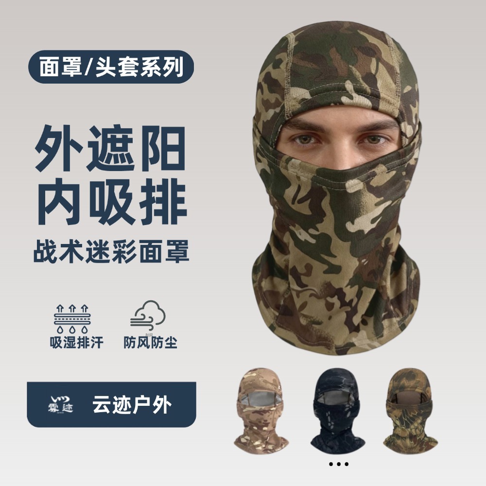 跨境迷彩圆边帽头套套装户外防晒头戴尼帽战速骑行面罩登山钓鱼