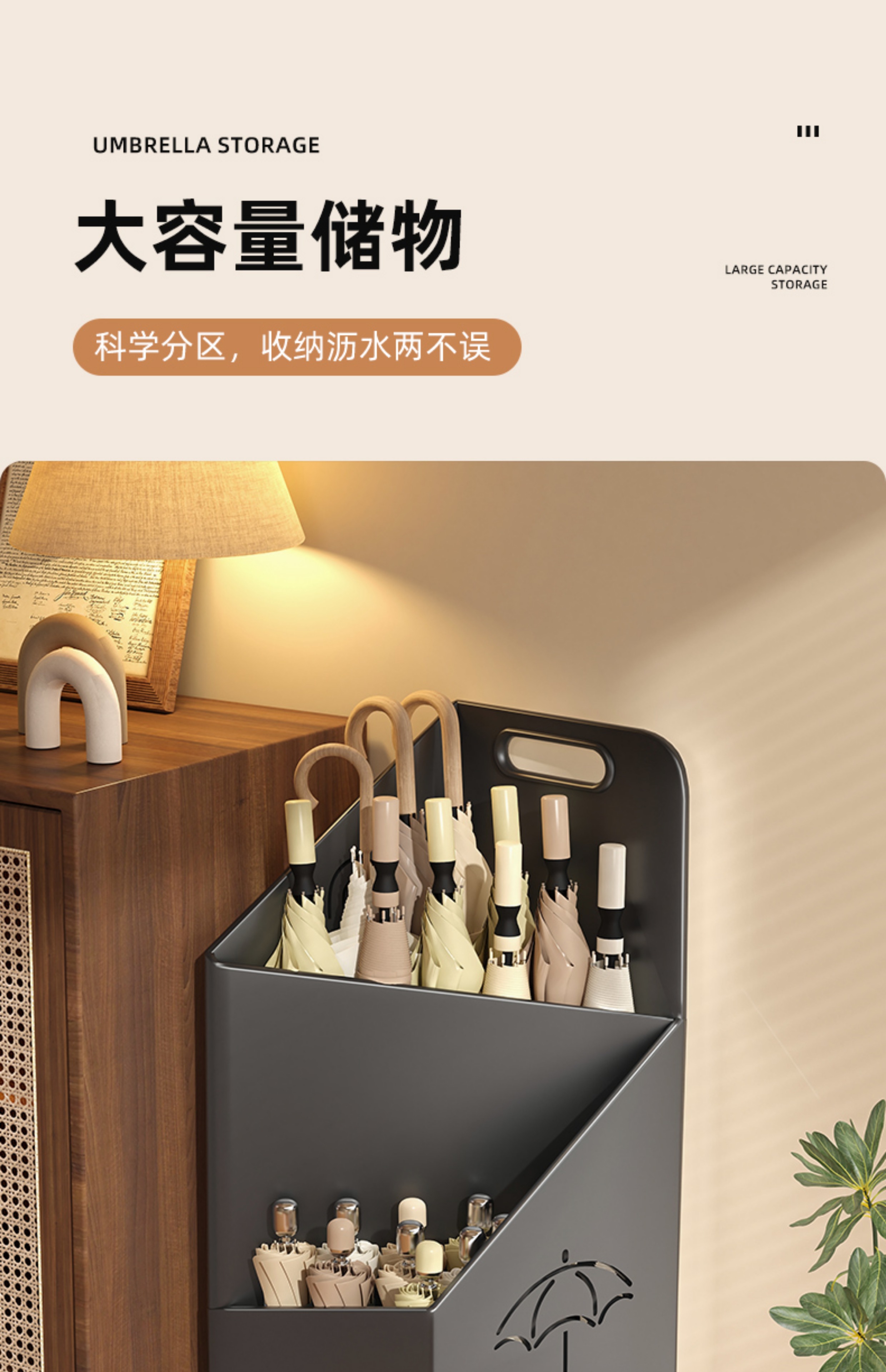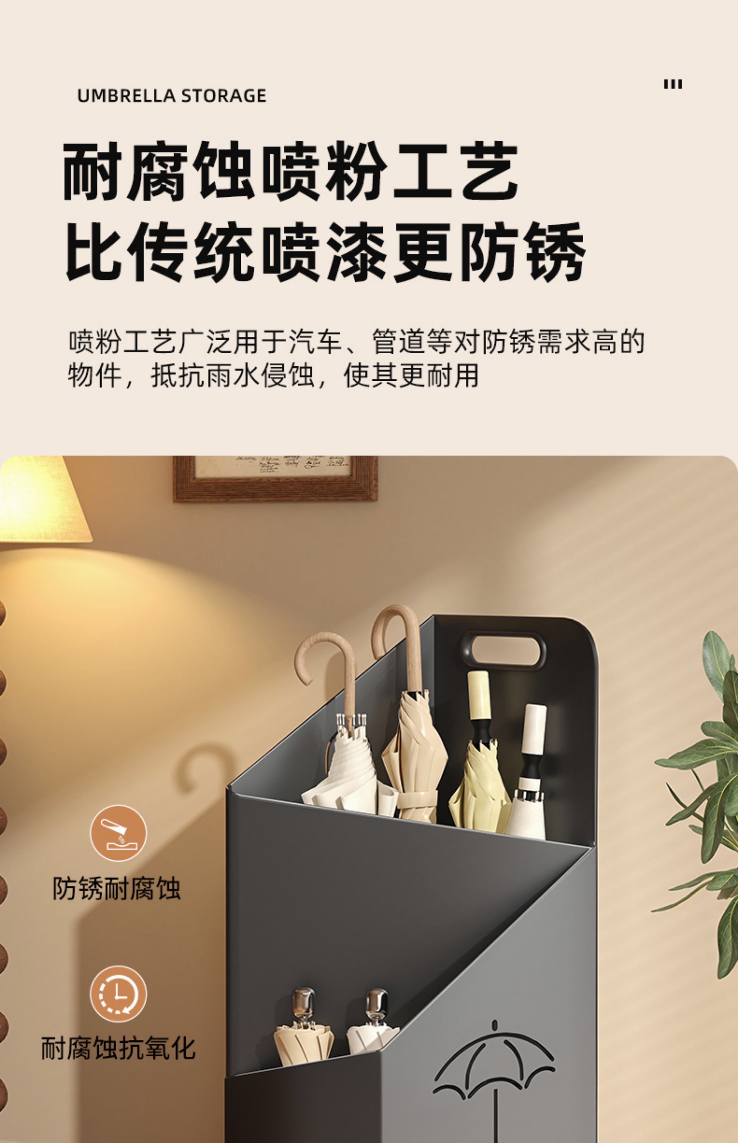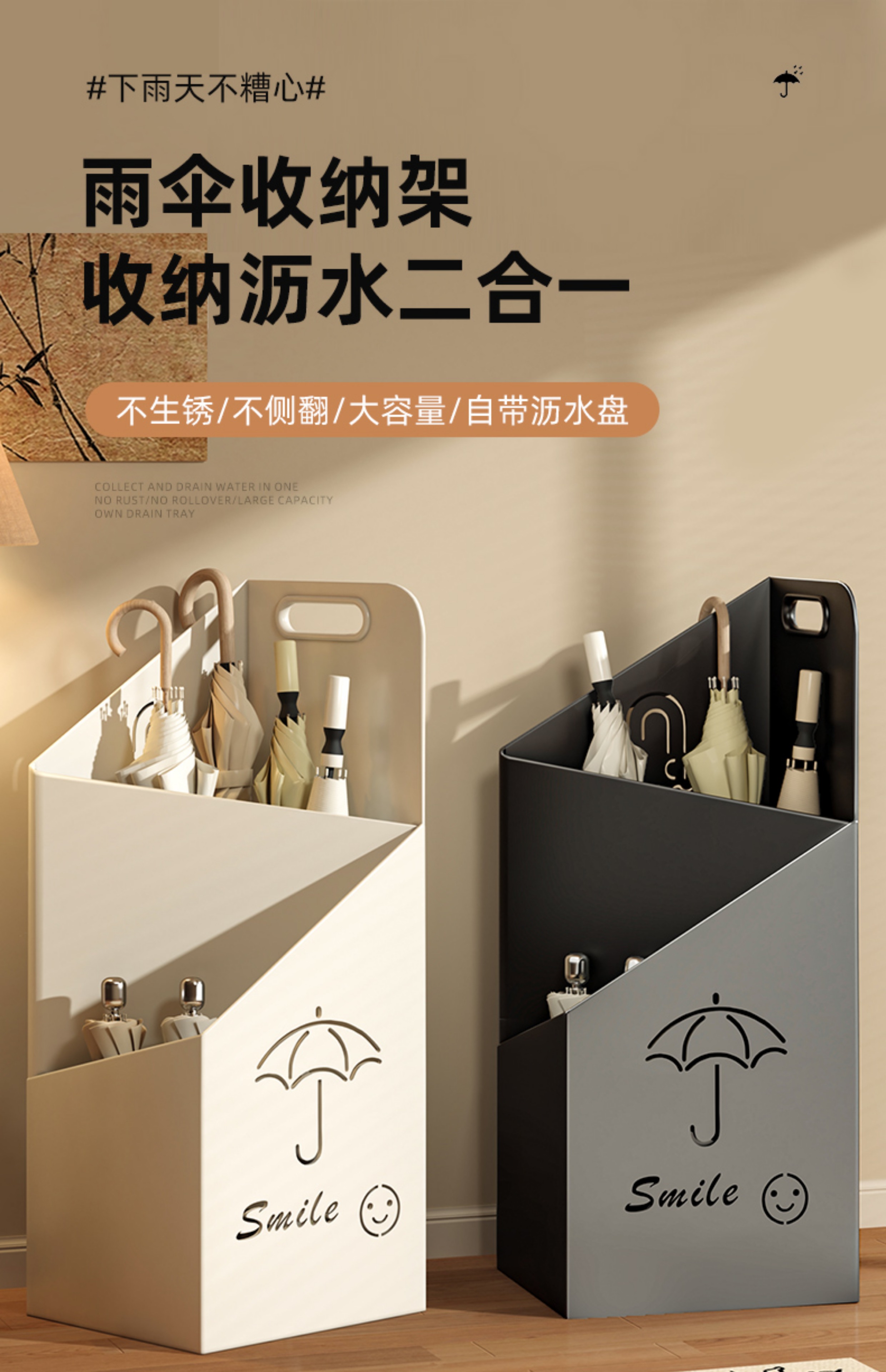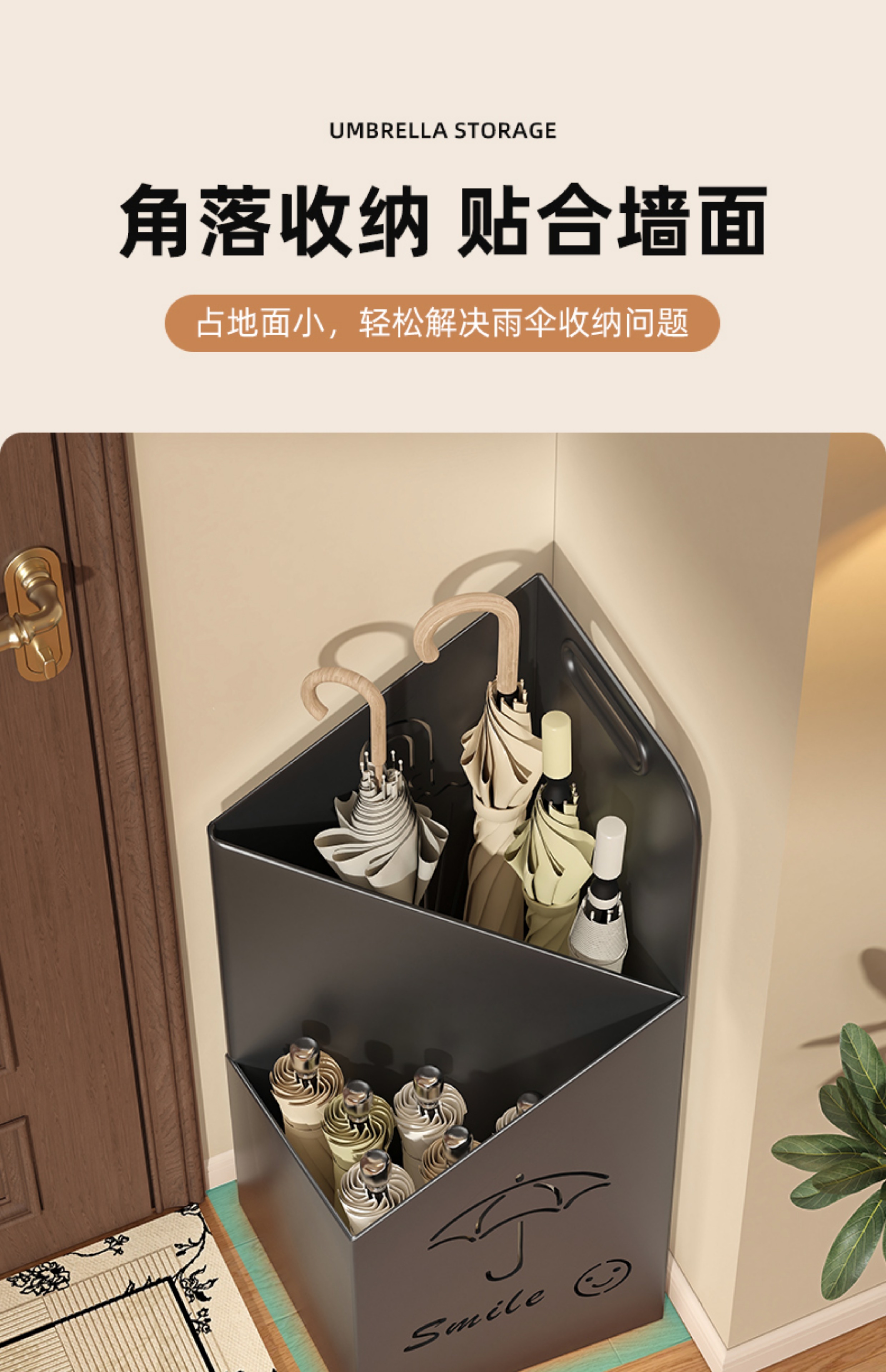 玄関に傘収納ラック、家庭用玄関ドアに傘収納ラック、傘バケツ排水ラック、業務用傘収納ラック