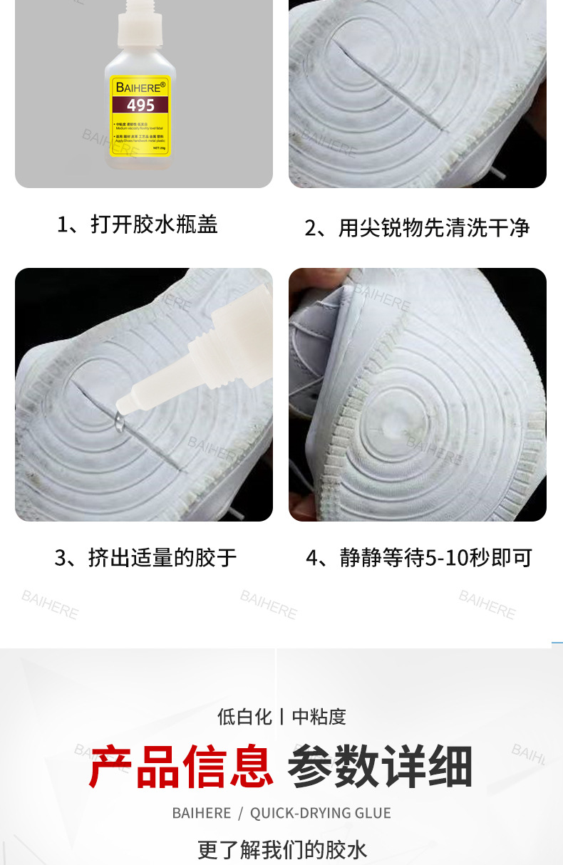 透明強力495接着剤瞬間接着剤共通ソフト495瞬間接着剤靴接着剤低白化PVC速接着剤