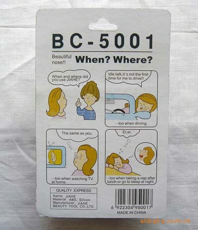 ◆它就像是一个的夹子,只要将它夹在鼻梁下端(靠近鼻头的地方),就可以在不知不觉的情况下将鼻子变成高耸的"美鼻"了,神奇吧! 不管开车、看书、看电视...等活动皆不影响,实用喔!可以调整间距,不管各种鼻型皆可使用!