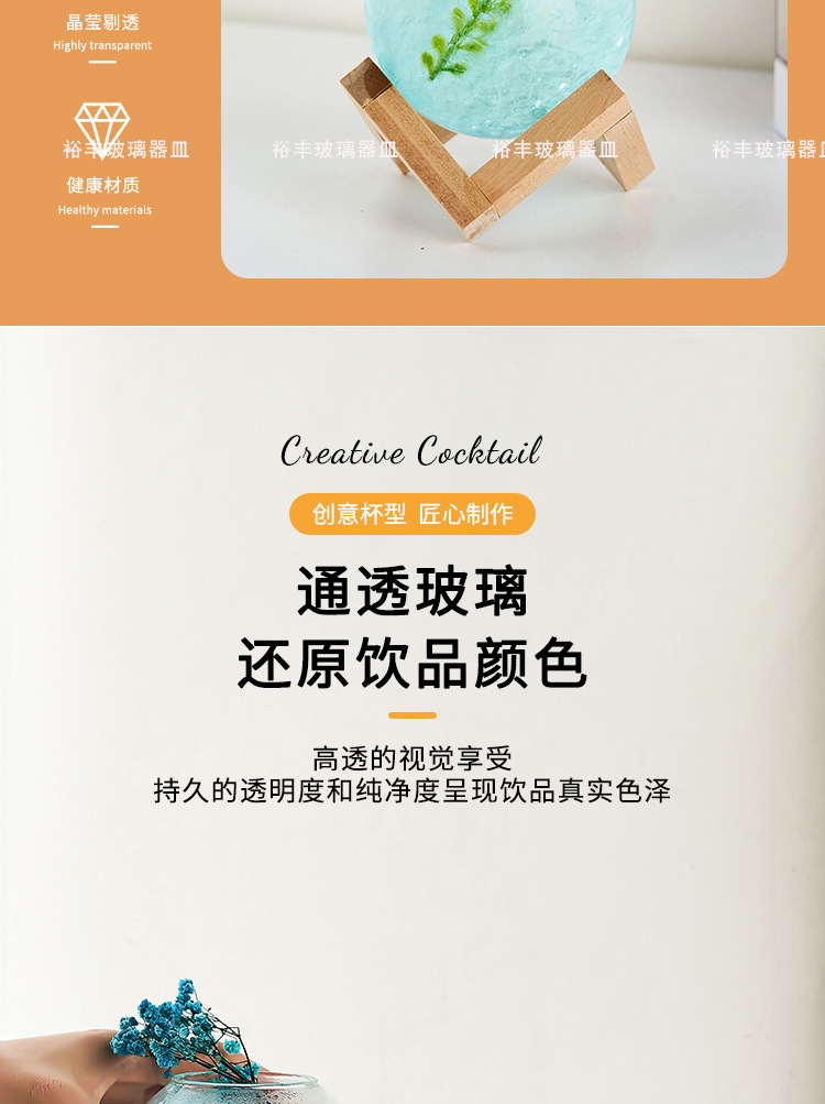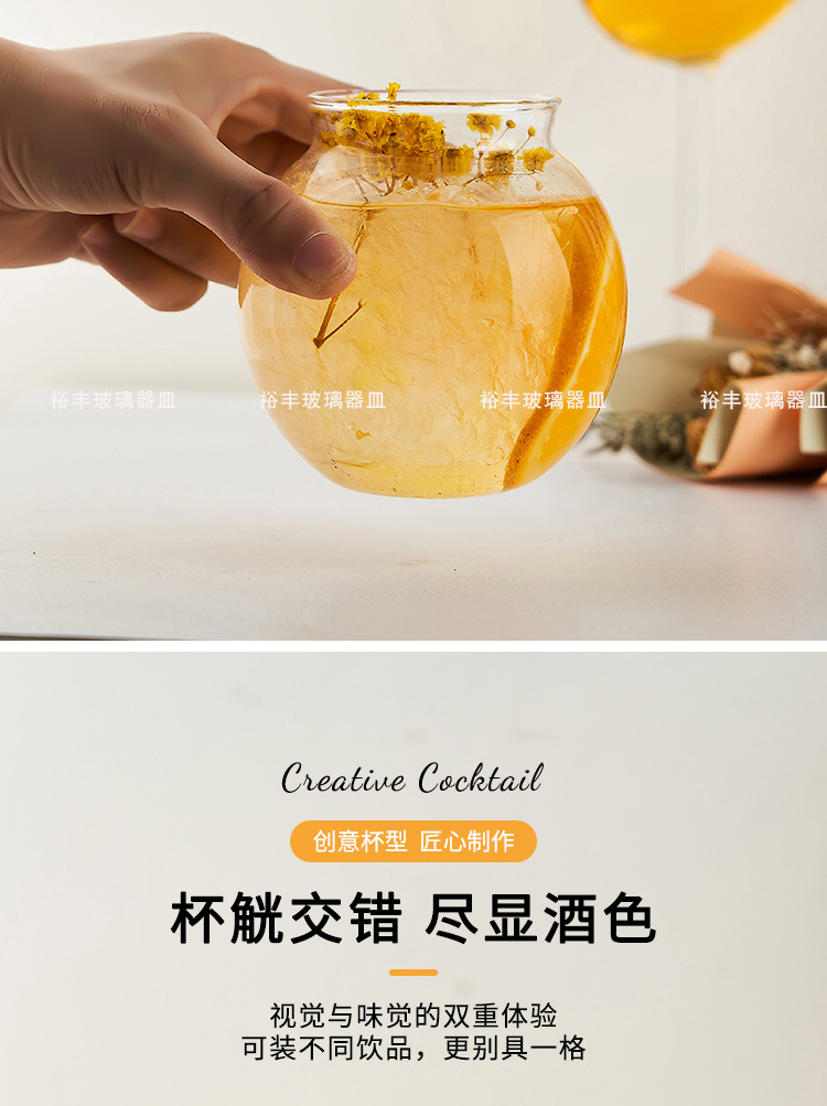 Ins高颜値ガラスカップカクテルジュース氷カフェカップミルクティーカップレストラン冷たいドリンク氷砂カップ
