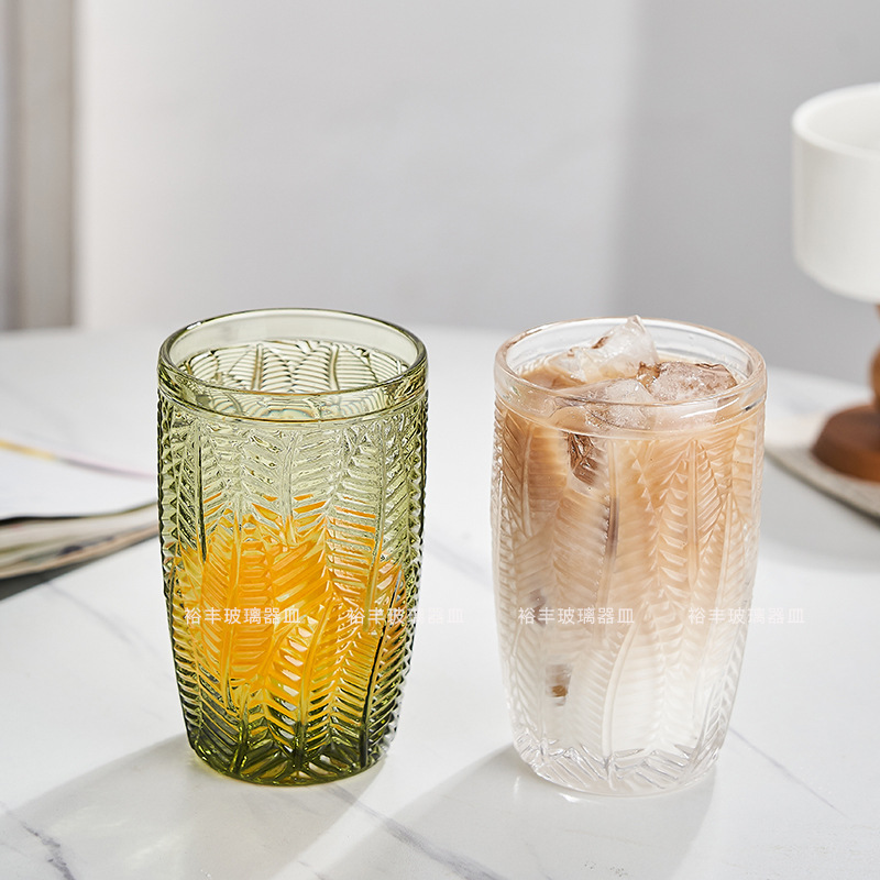 レトロなインメープルリーフエンボスガラス高価値コーヒーカップデザインミルクドリンクジュースドリンクカップ
