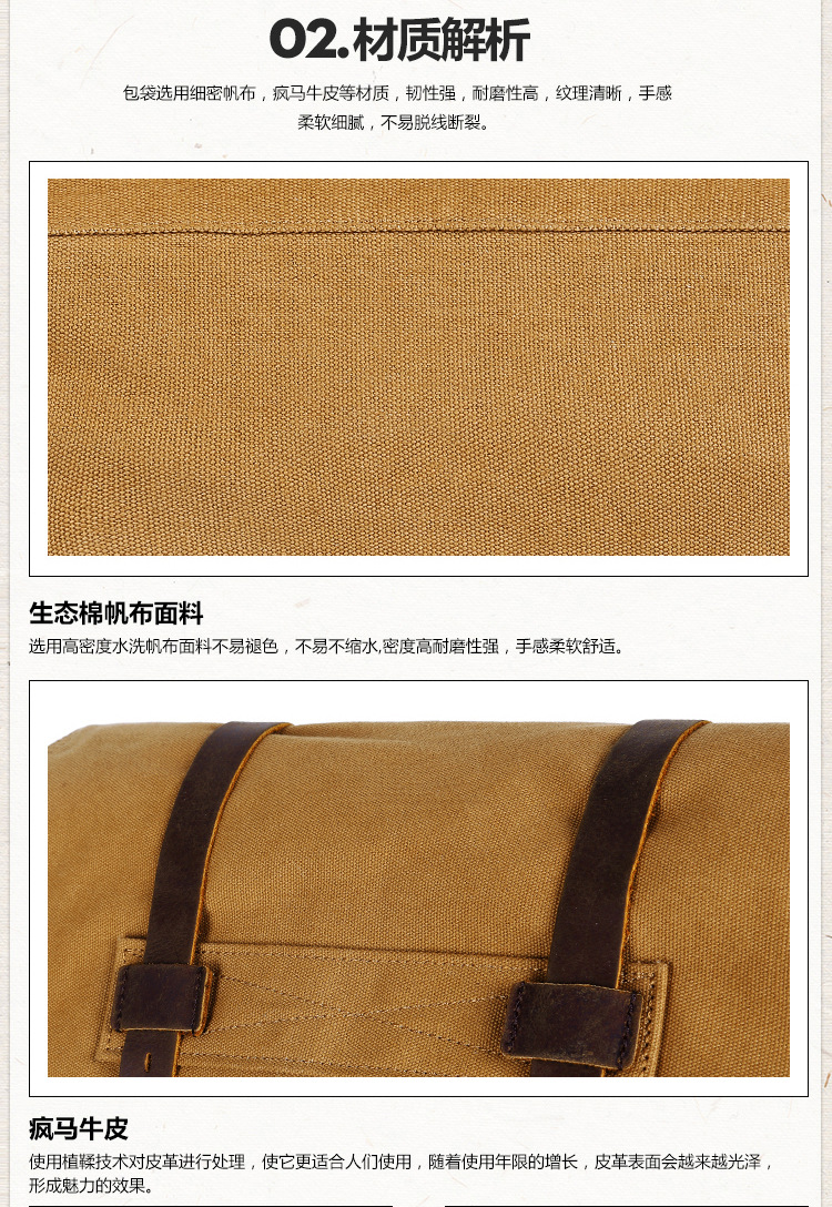 レトロなキャンバスのショルダーバッグカジュアルな斜めの男性用ワックス防水キャンバスのパソコンのカバンと狂馬皮郵便のカバンの卸売り