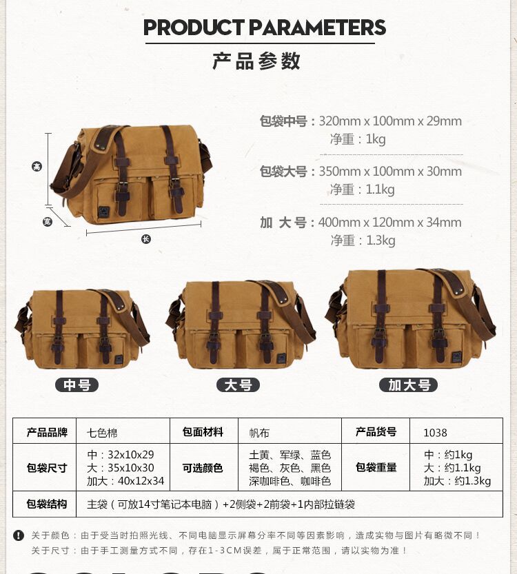 七色綿郵便差斜めショルダーバッグ男性潮拡大号17インチパソコンバッグ屋外レジャーシングル肩キャンバスバッグ現物