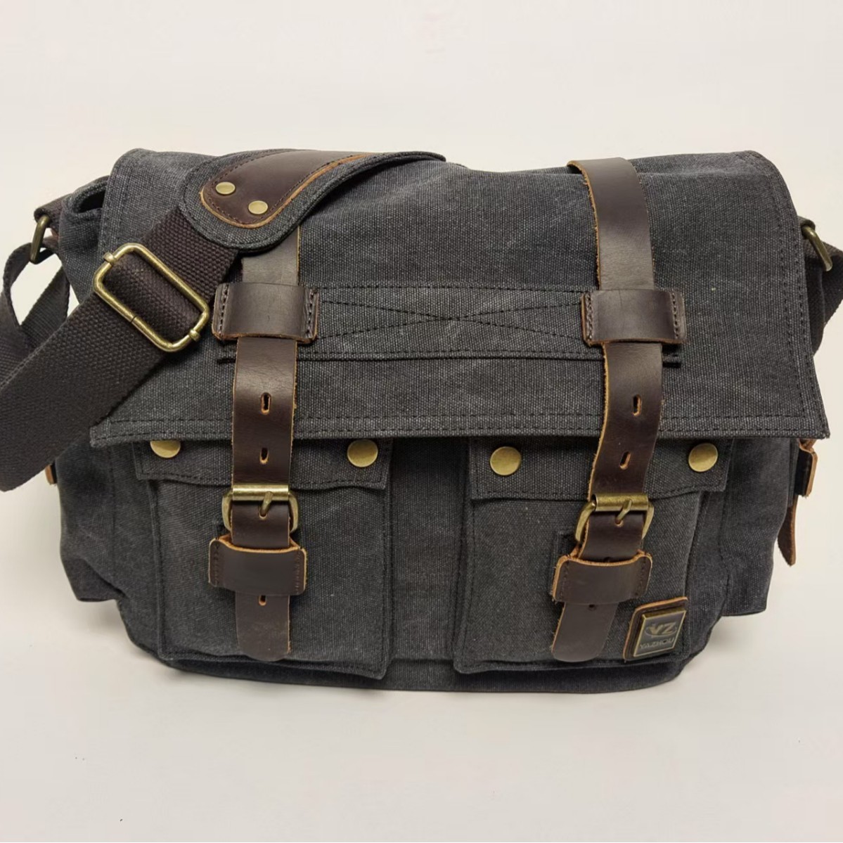 メンズハイエンドキャンバスショルダーバッグ大容量レザーメッセンジャーバッグメンズカジュアルバッグメンズバッグ広州スポット卸売