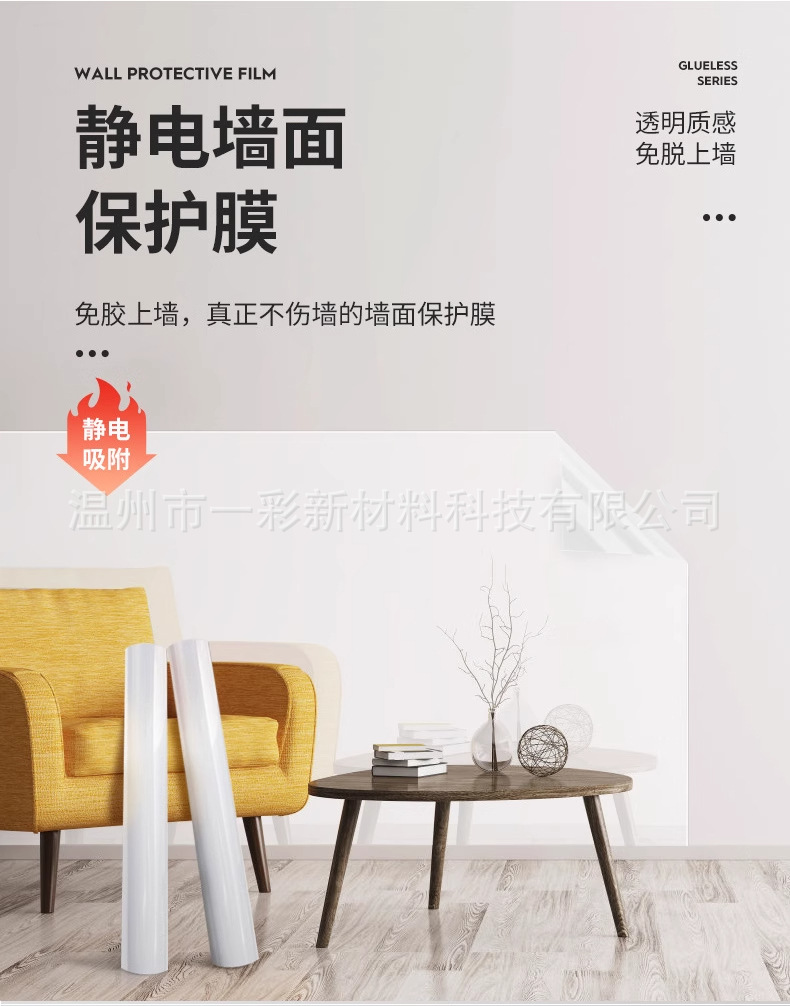 乳胶漆墙面静电保护膜不伤墙透明静电贴吸附墙壁贴纸防水防油客厅