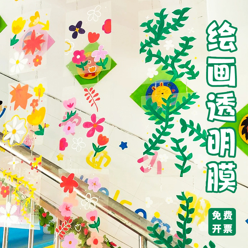 幼稚園環創透明絵画軟膜ガラス紙児童プラスチック美術画膜装飾材料掛け画布