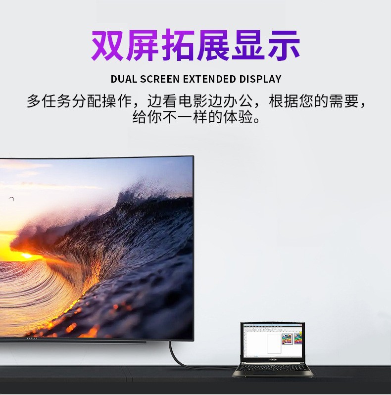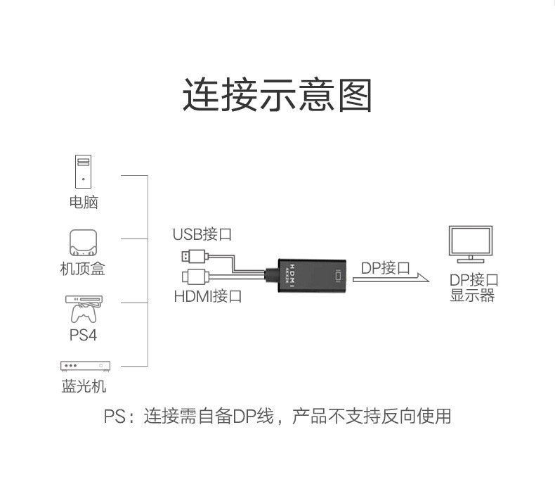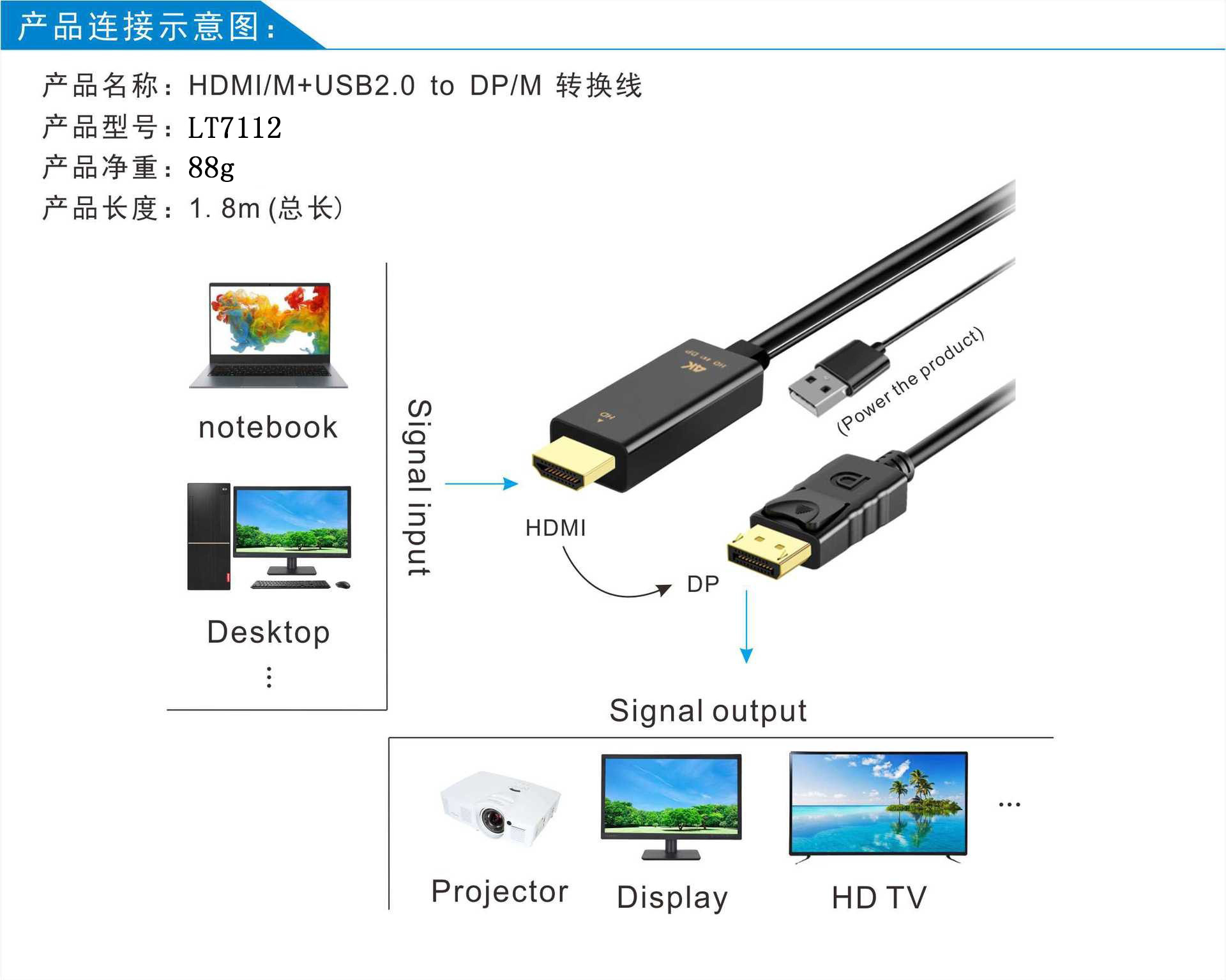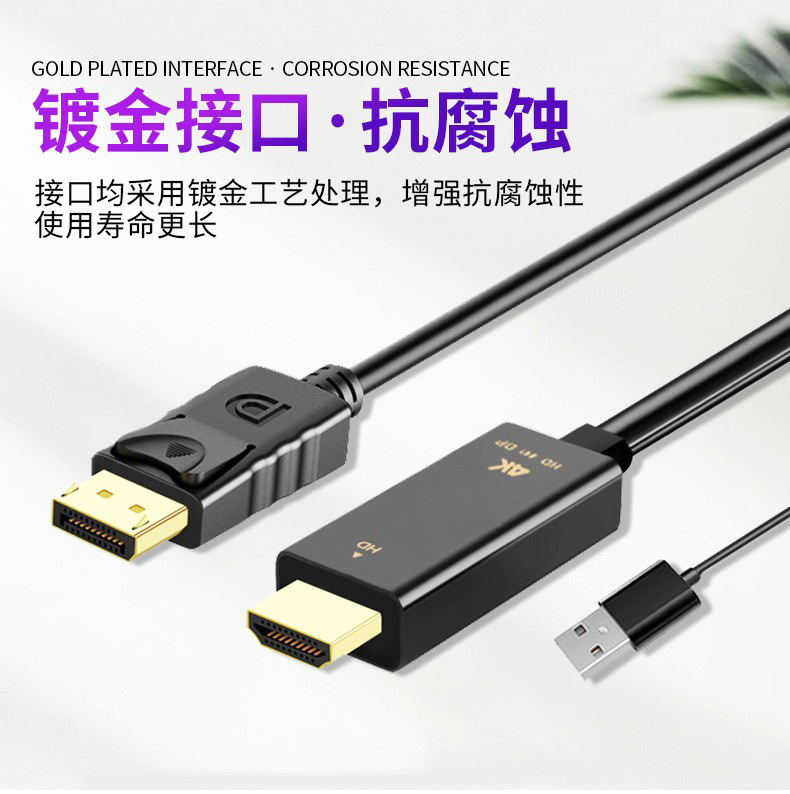 hdmi转dp转接线USB高清4k电脑显示器投影仪1.8米hdmi转dp线带供电