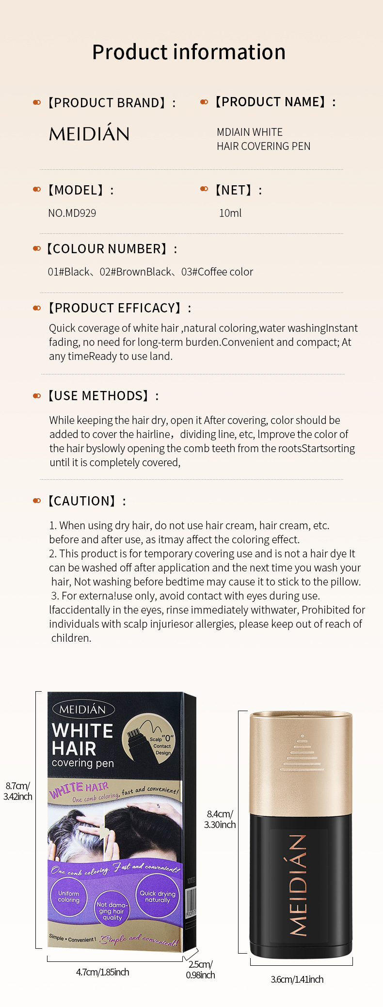 【外国貿易】白髪をカバーし色褪せないヘアペン、植物性黒髪用使い捨て染毛ペン