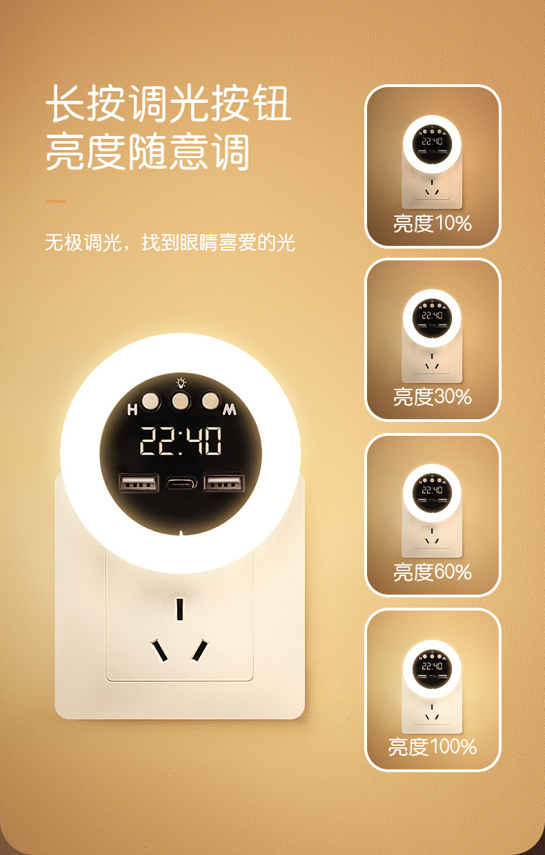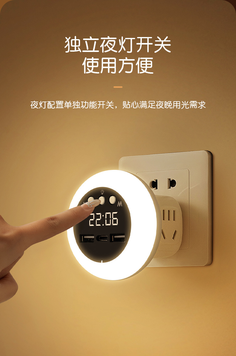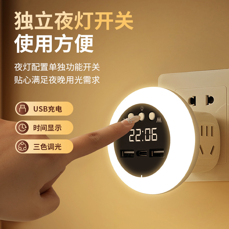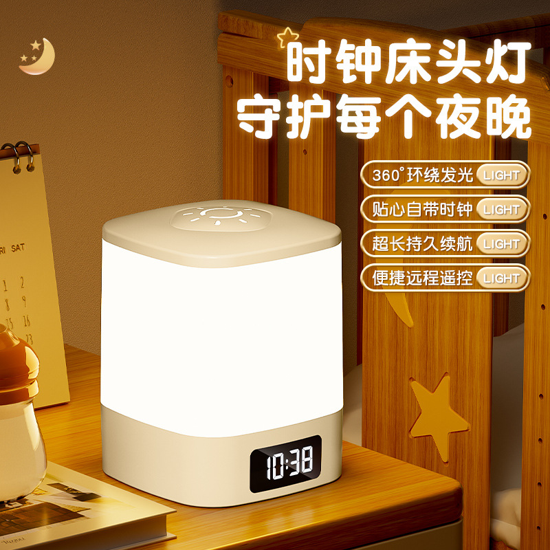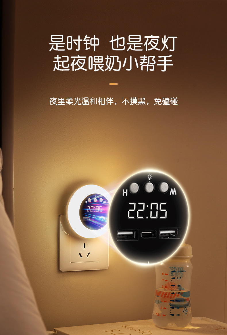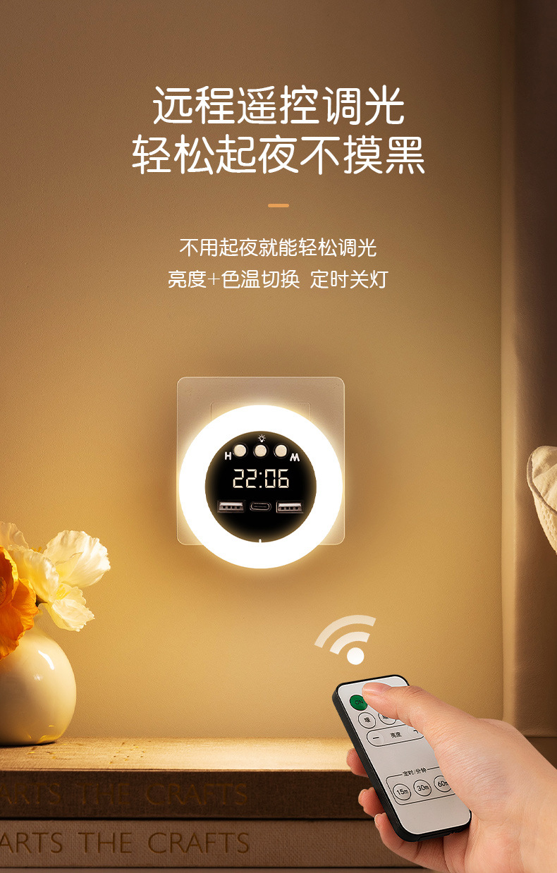 ライト高級ハイエンド LED 多機能ソケット寝室の赤ちゃんの授乳目の保護ベッドサイドランプ時計リモコンナイトライト