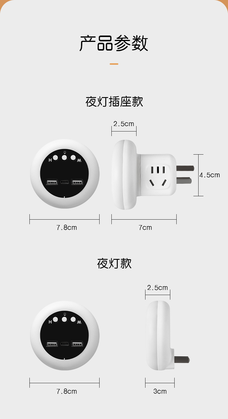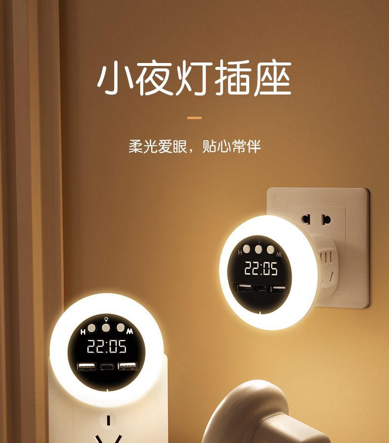 智能语音USB插座家用宿舍卧室床头声控灯多功能转换器插头小夜灯