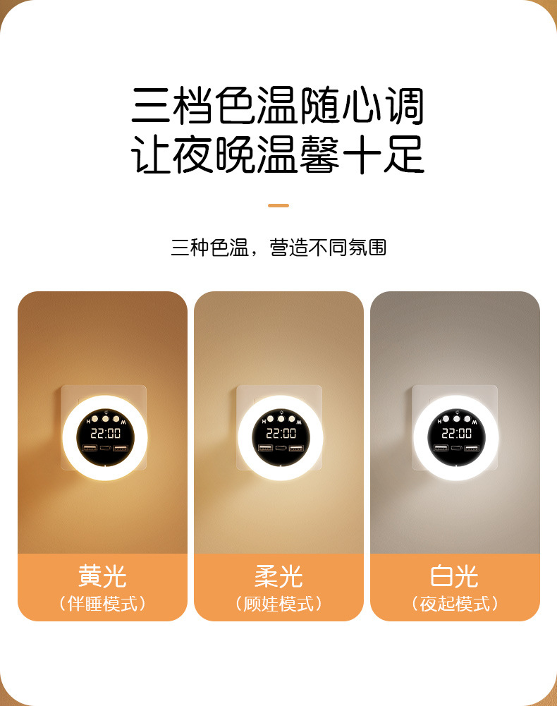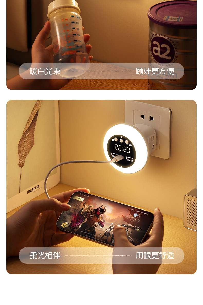 赤ちゃんの夜灯光制御プラグイン電気ソフト光誘導省エネ保護眼寝室起夜ベッドヘッドランプ睡眠ソケット式