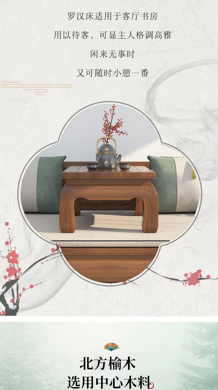 古いニレ羅漢ベッド無垢材新しい中国風多機能シンプルな羅漢ソファベッドほぞ穴無塗装禅美