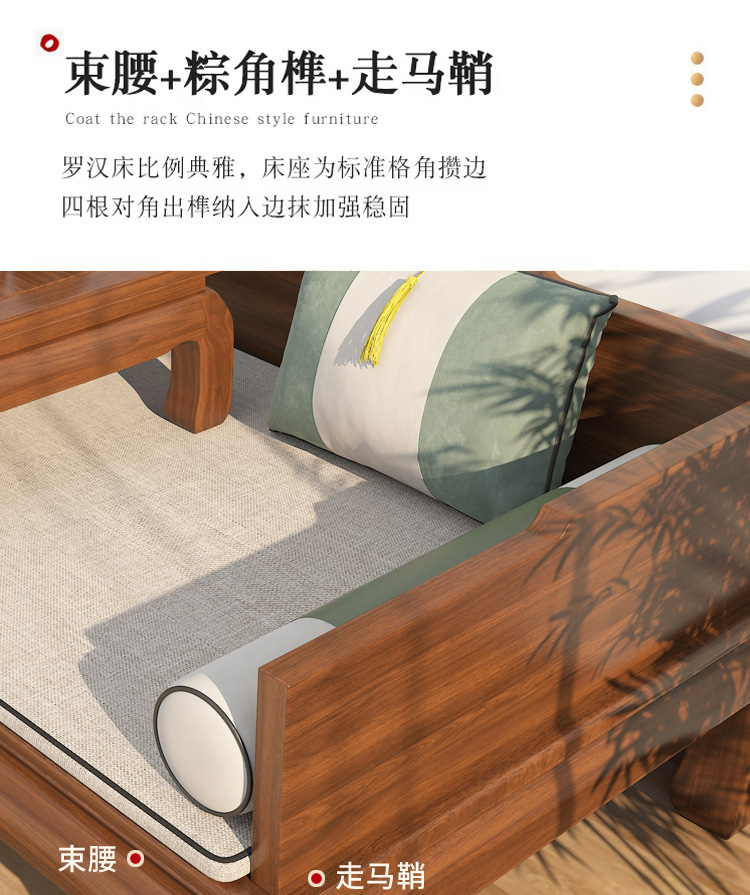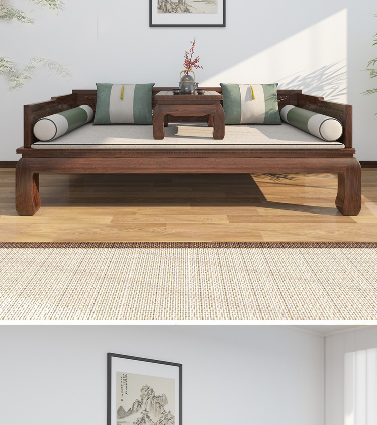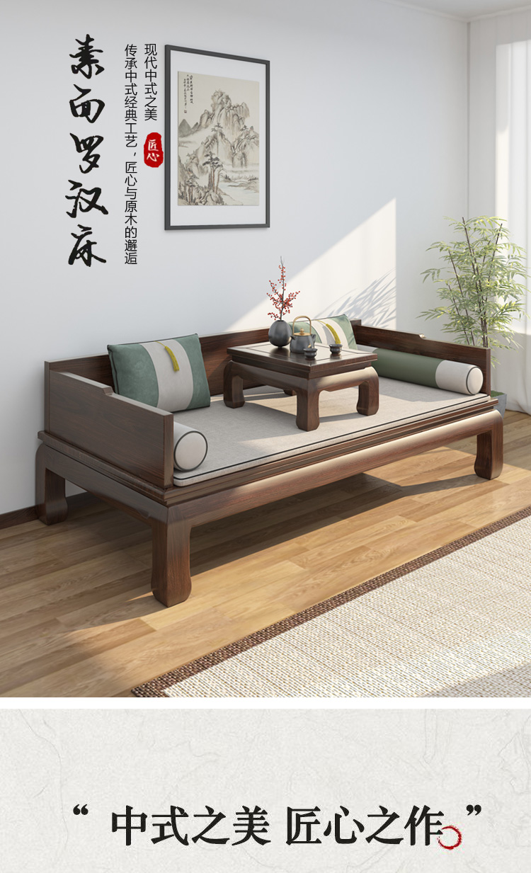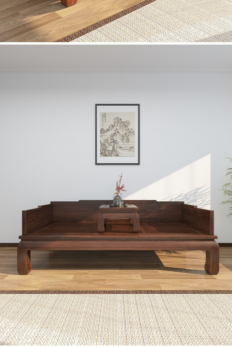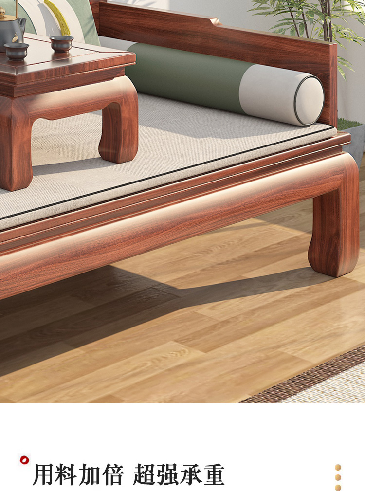 宋代美学实木罗汉床新中式禅意卡座客厅贵妃榻茶室木头双人沙发椅
