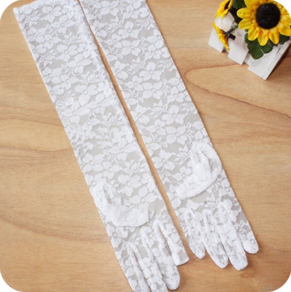 外国貿易の新型の通気レースの手袋の女性の長いタイプの日焼け止めの全指の手袋の結婚式の舞台のショーの手袋の卸売り