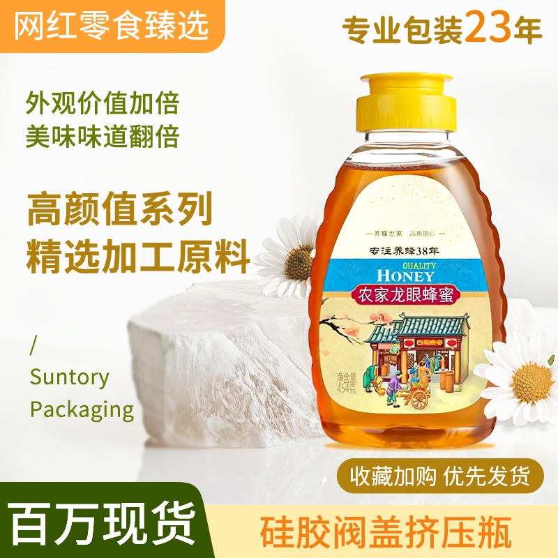 该产品特点:十字开口,方便挤压,可控制蜂蜜流量,可倒置,不漏蜜,运输安全
