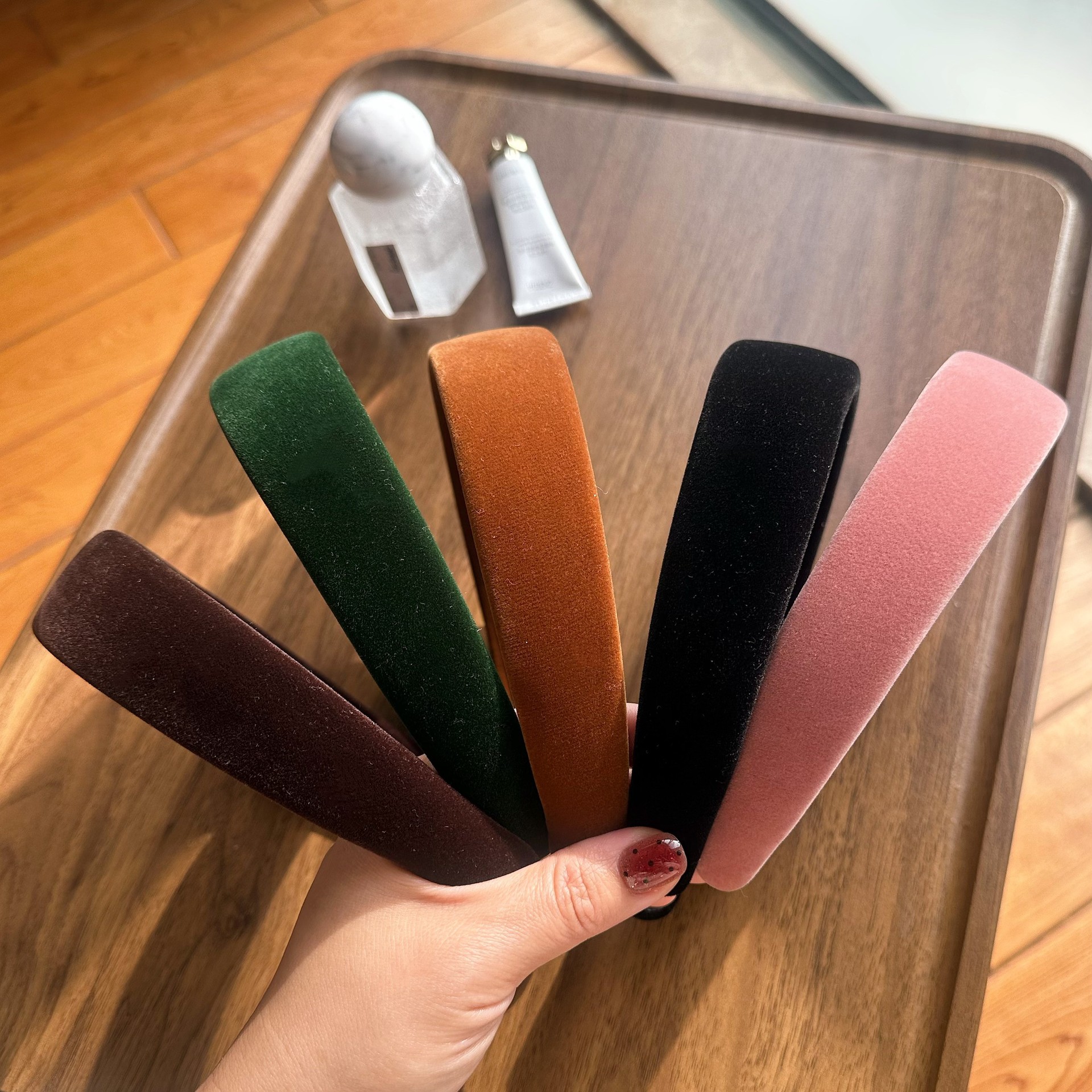 韓国製ベルベットスポンジヘアバンド レディース 秋冬 高頭囲 幅広 ネット人気 レトロ風 レッド ヘアクリップ ヘッドバンド