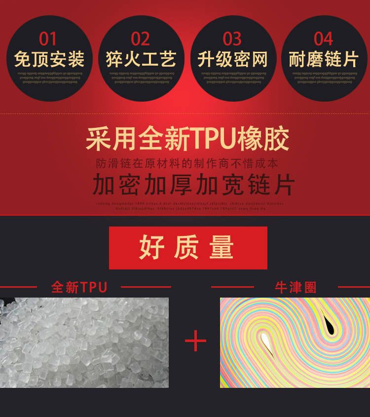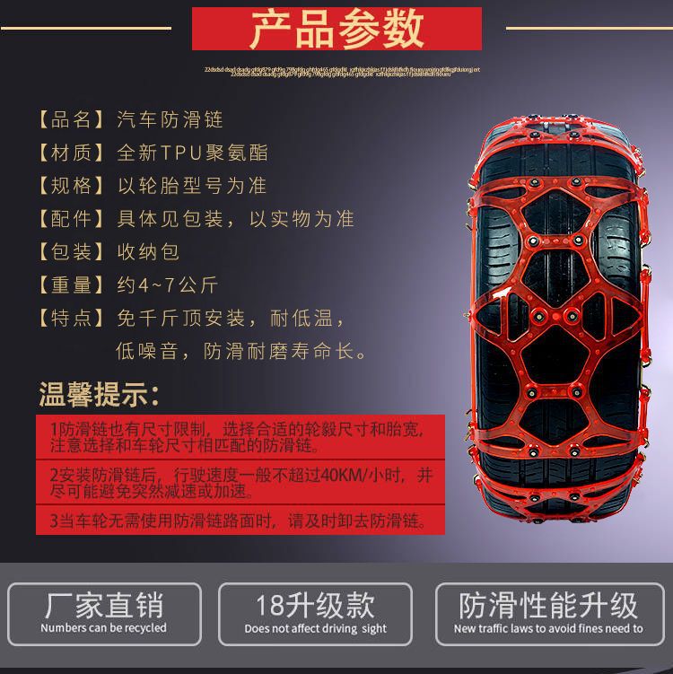 产品名称:“鸿莱嘉”牛筋全包款防滑链(加厚款)