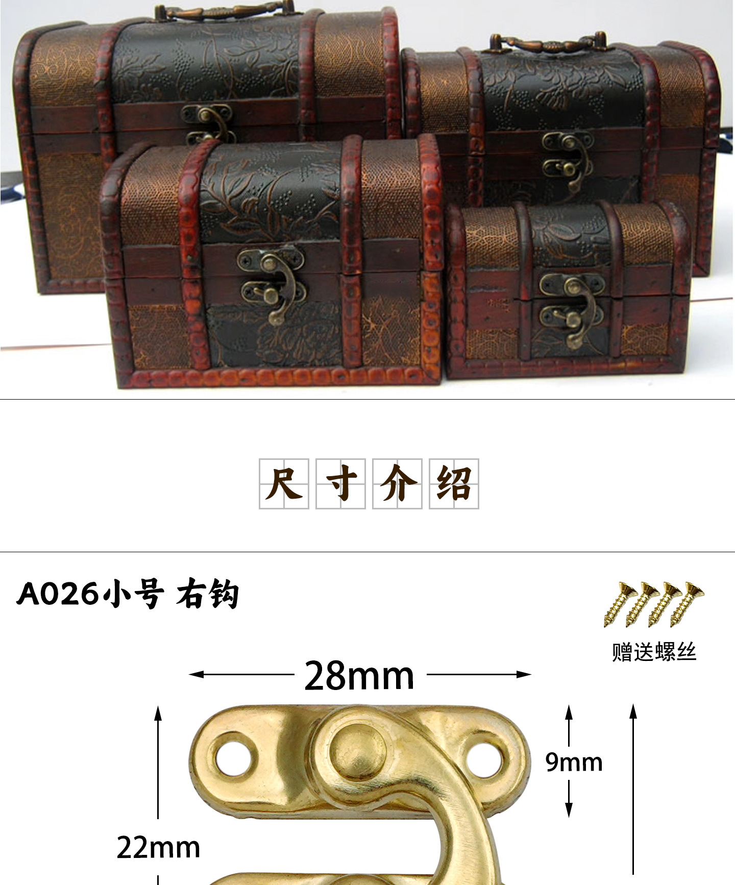 呈宇大穴留め金具ミニ木箱フックボックスバックル金物アクセサリーロック卸売ロックバックル南京錠固定具