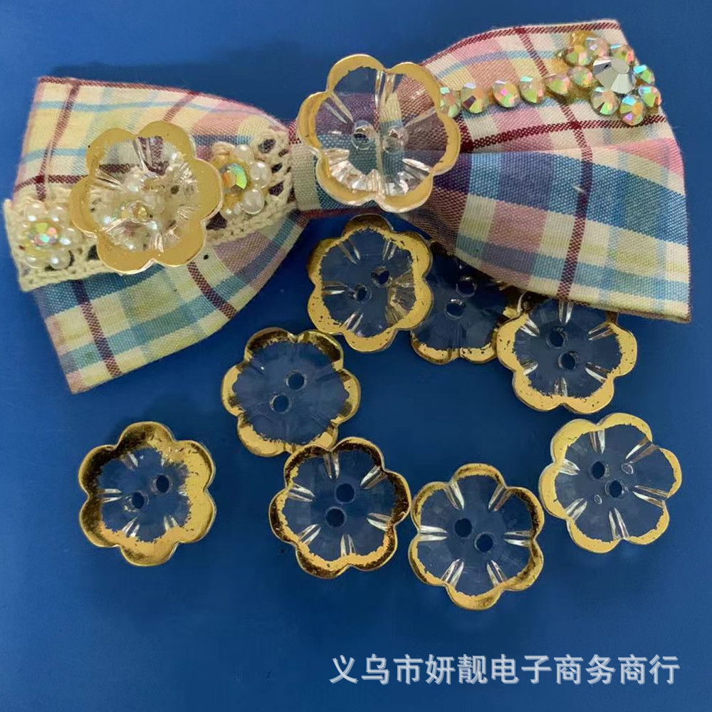 烫金底系列纽扣用途广泛,整体采用梅花形设计,多用于服装鞋帽等,起订量面议。