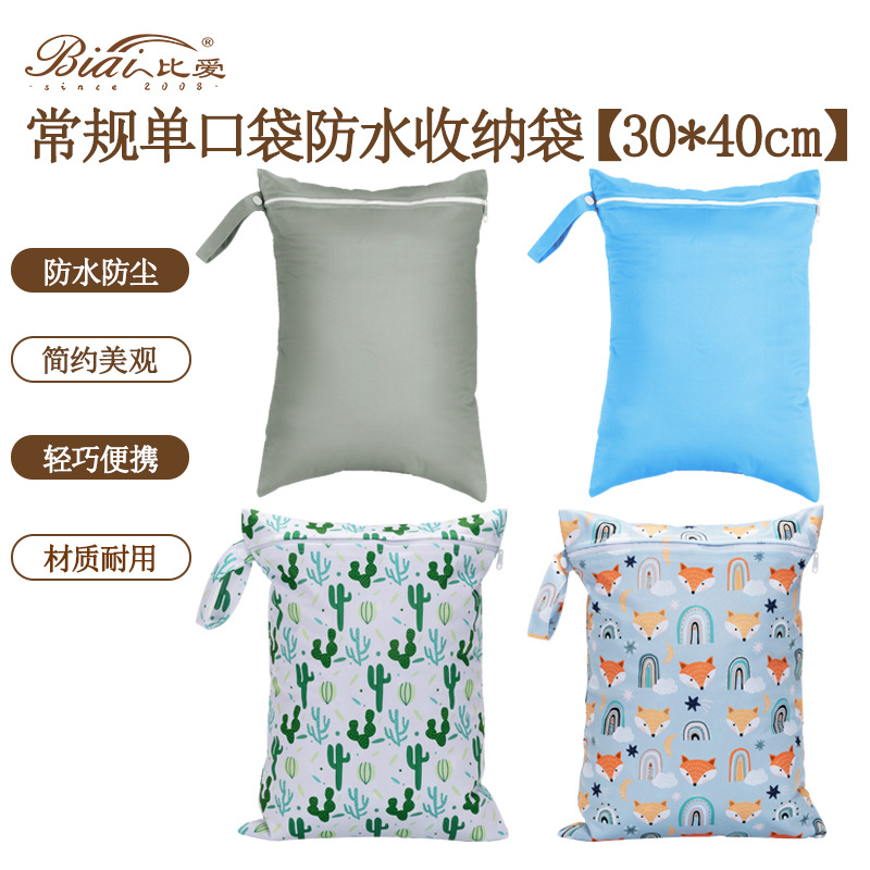 宝宝日常的生活用品比较多,收纳袋成为实用品;此款宝宝尿裤收纳袋采用拉链双口袋设计,尽可能增加布袋的容量;妈妈们可以一个拉链袋放干净的尿片,另一个口袋可以放尿湿的尿片;妈妈们也可以自己安排放其它的东西,防水效果好;挂绳按钮式设计,可挂婴儿车床,麻麻们外出携带方便